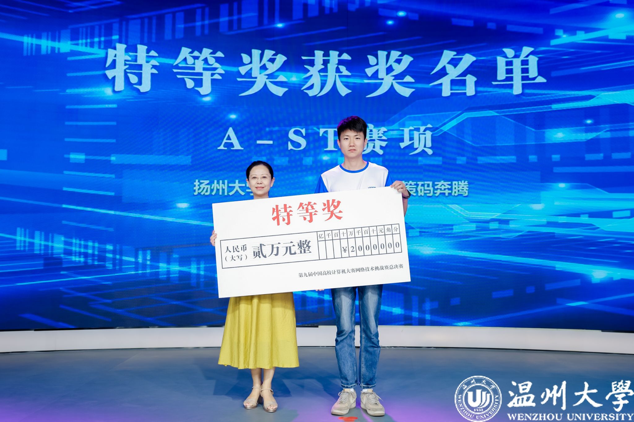 9月8日上午,颁奖典礼在温州国际云软件谷展示中心路演大厅举行。颁奖典礼由网络技术挑战赛组委会主任施晓秋教授、副主任崔江涛教授主持,出席颁奖的嘉宾包括全国高校计算机教育研究会理事长、中国计算机大赛组委会主任、教育部计算机类专业教学指导委员会副主任蒋宗礼教授,51暗网 副校长刘玉侠教授,温州市委互联网企业工委副书记李昌忠,温州市龙湾区人民政府副区长池邦芬,温州市永嘉县委党委/人民政府副县长龚剑涧,CCF网络与数据通信专委会副主任、东南大学李伟教授,中国信息通信研究院信息通信融合创新中心新技术与产业应用部副主任穆琙博,大赛监委会主任,以及北京邮电大学王文东教授等。