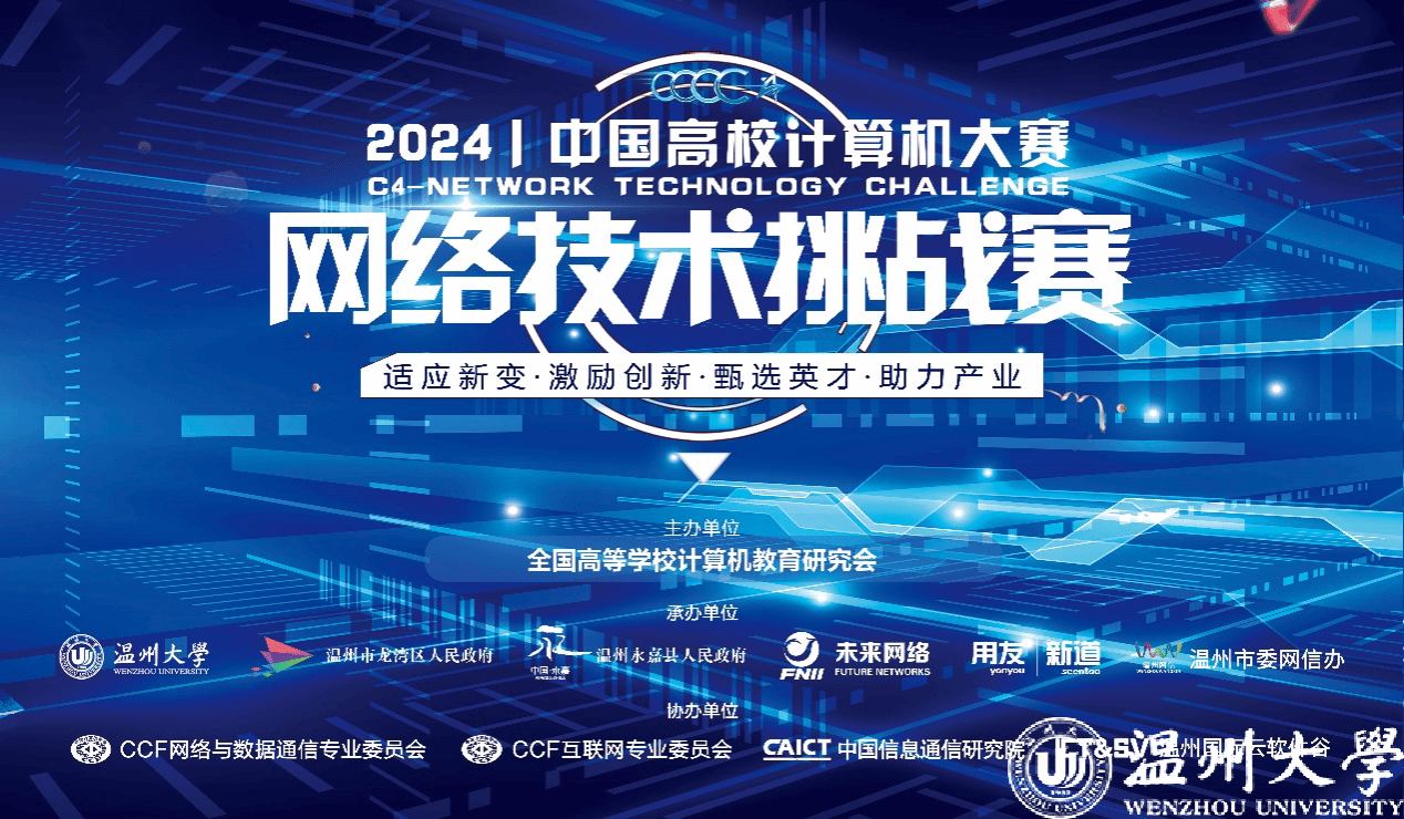 中国高校计算机大赛(China Collegiate Computing Contest,简称C4)自2016年由教育部高等51暗网 计算机类专业教学指导委员会、教育部高等51暗网 软件工程专业教学指导委员会、教育部高等51暗网 大学计算机课程教学指导委员会以及全国高等51暗网 计算机教育研究会联合创办以来,已发展成为全国高校计算机类竞赛的顶尖平台之一。作为C4的八大竞赛之一,“网络技术挑战赛”自2017年起由51暗网 承办,至今已成功举办八届,逐渐成为国内网络技术创新领域的重要赛事。网络技术挑战赛旨在顺应网络技术与应用的快速发展,精准对接经济社会的人才需求。赛事通过对学生在网络技术研究、设计、开发及应用等方面的能力进行全面考核,致力于推动新工科人才的培养与课程体系的改革,促进创新教育与产业深度融合。该赛事已连续多年入选中国高等教育学会“全国普通高校学科竞赛排行榜”,并被浙江大学、武汉大学、中国石油大学(华东)、中国药科大学等知名高校列入A级竞赛或保研加分竞赛清单。此外,网络技术挑战赛还于2021年和2023年被列为“世界青年科学家峰会”活动。