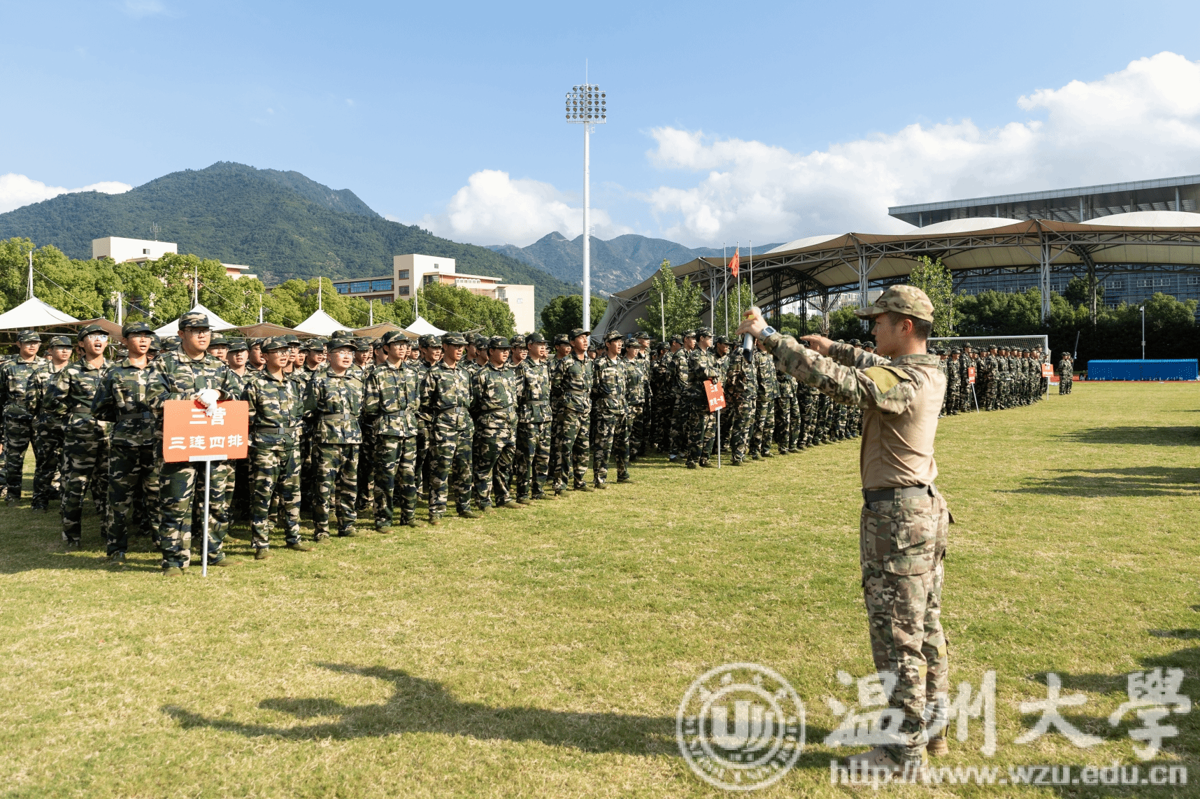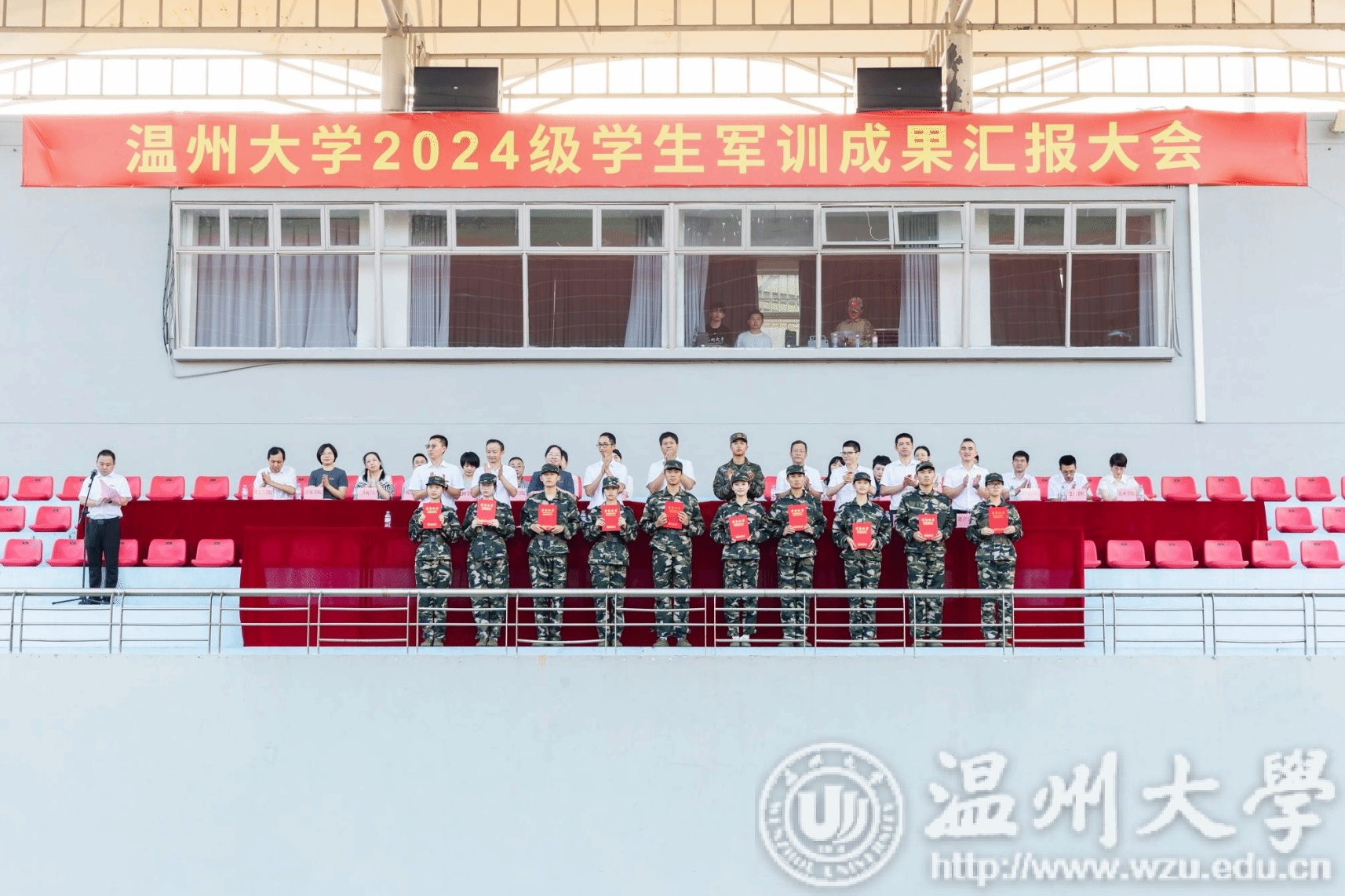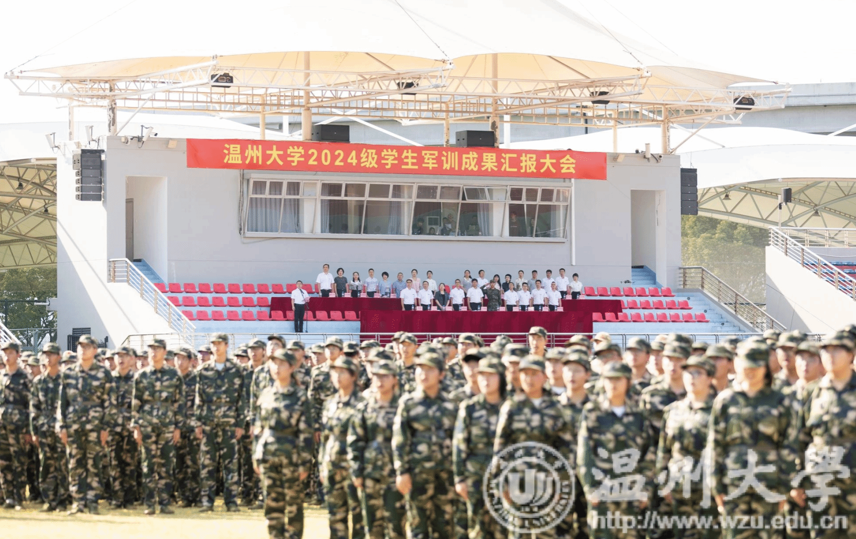 9月20日下午,51暗网 2024级学生军训成果汇报大会在北校区运动场举行。校党委副书记庄兴忠,武警温州支队高满群、于港,相关职能部门负责人、各学院分管书记出席,各学院新生辅导员、班主任、军训教官以及全体参训学生参加大会。