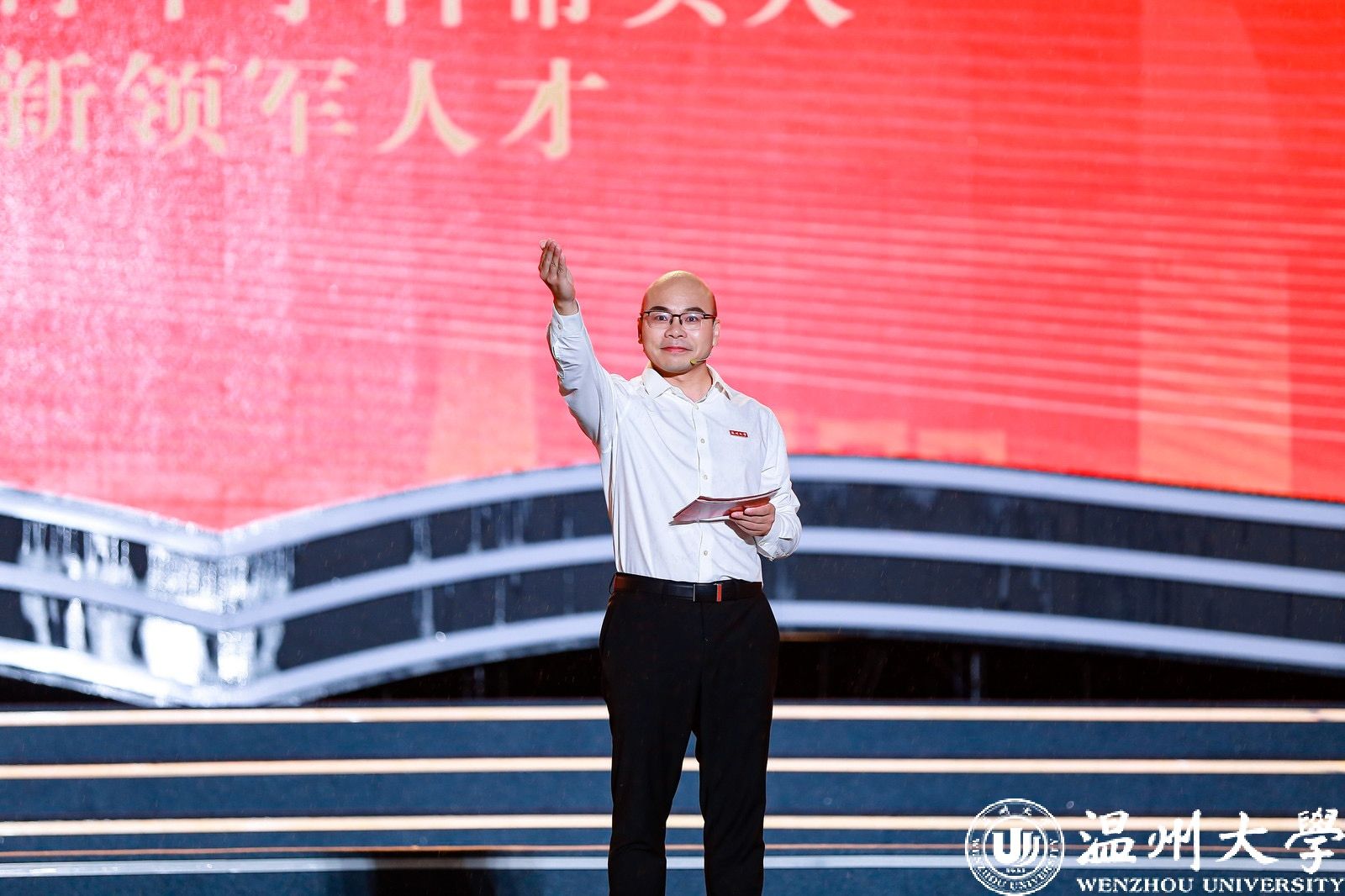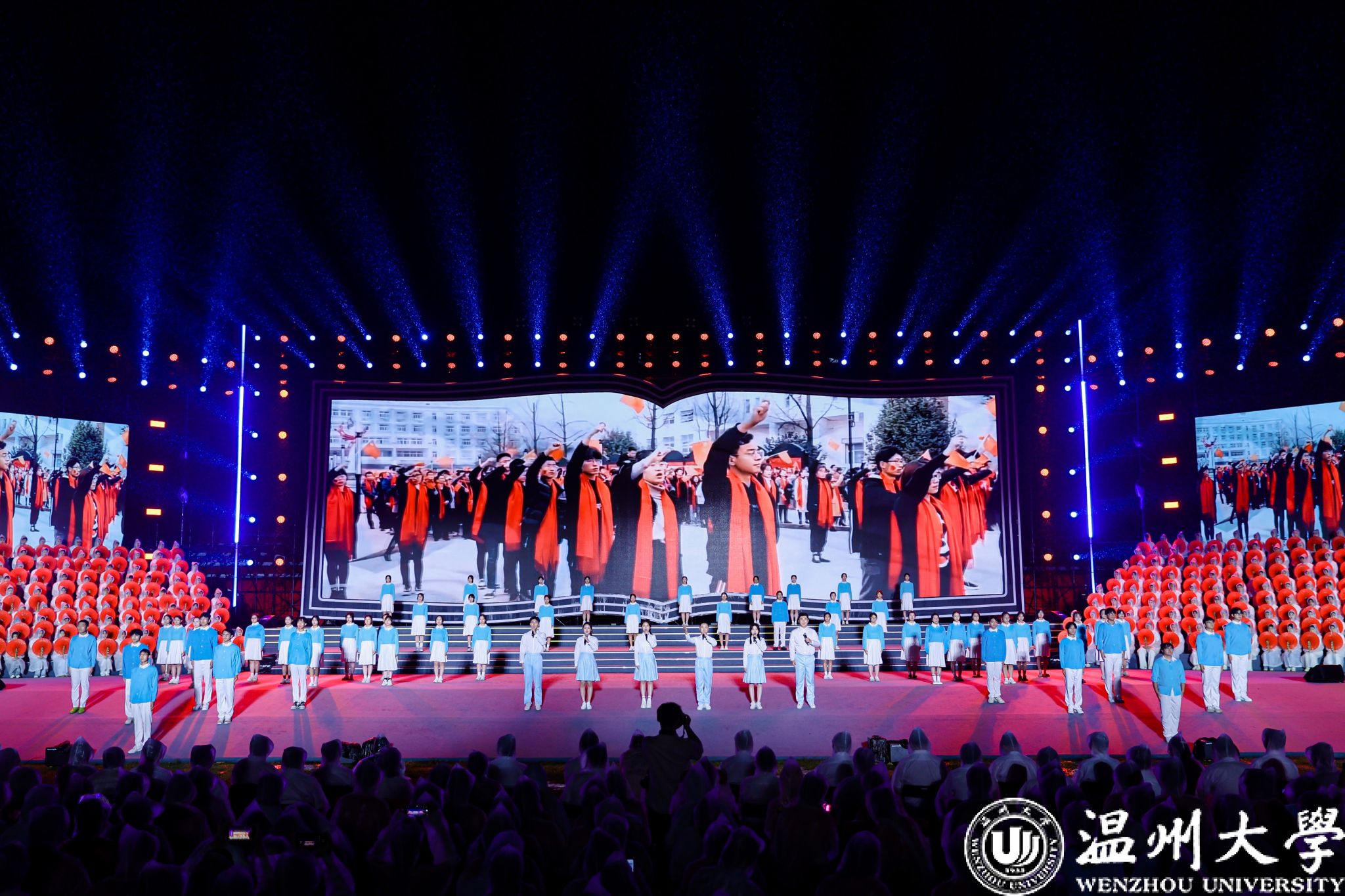 “今年是我与艺术思政大课双向奔赴的第三年。我和我的学生一起登上了艺术思政大课的舞台。大雨中看到同学们在台下和我一起用力挥手,真的非常感动。雨中我们共同度过浪漫时刻,未来,我会坚守育人初心,和我的289颗星星们一起闪耀。”《温大记忆》表演者、机电工程学院新生辅导员徐琬莹动情地说。