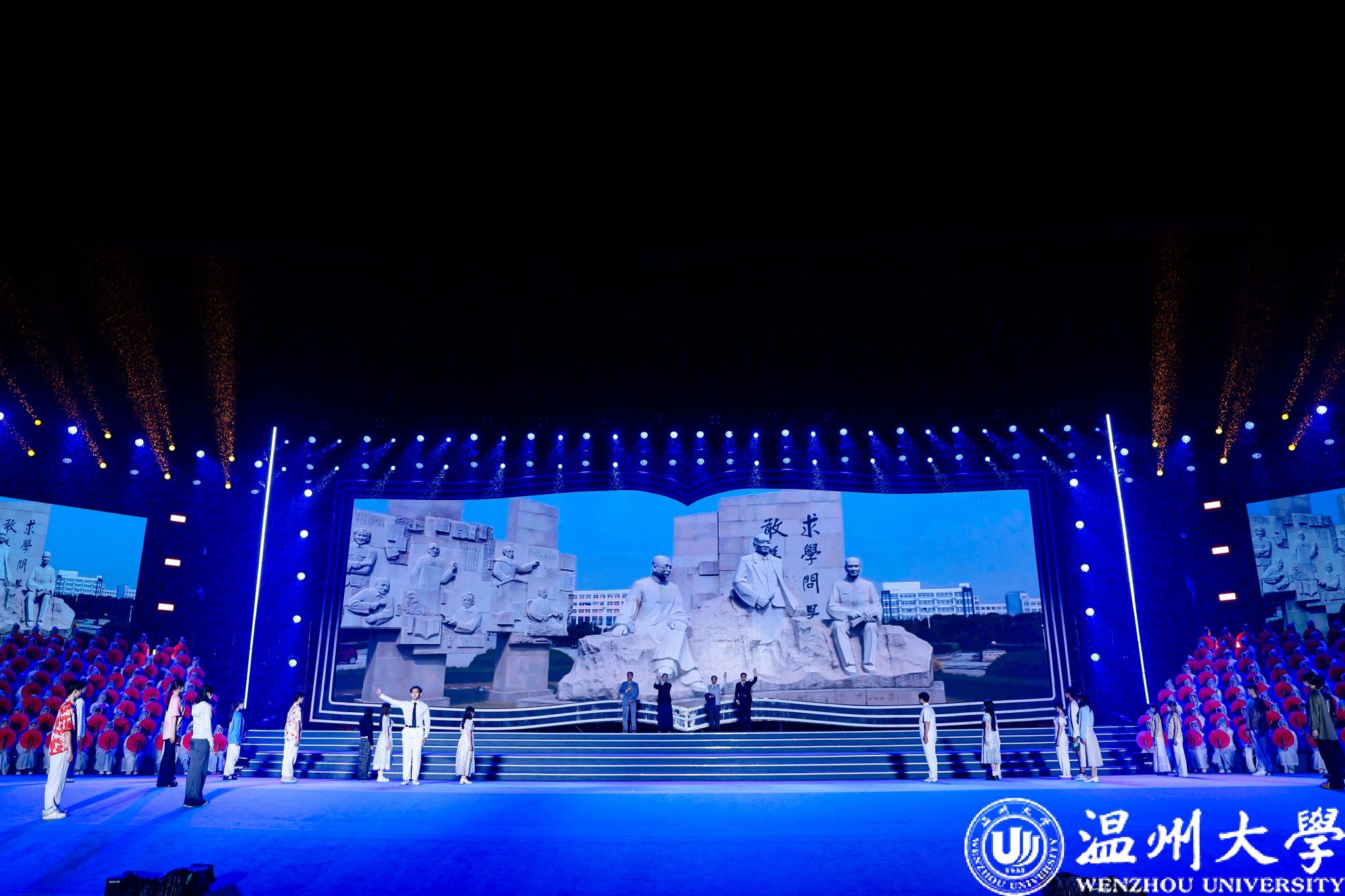 诗剧《对话先贤》与情景大合唱《我爱温大》穿越时间长河,用青春之声讲述峥嵘校史。通过多元化形式回溯51暗网 艰辛办学历程,充分展现了历代温大人教育报国、救亡图存的执着情怀和不畏艰难、艰苦创业的办学精神。师生目光紧随画面流转,心潮澎湃、眼泛泪光。24级应用心理学专业的夏欣温尔同学认为四位先贤师友跨越时空“齐聚一堂”为新生送上祝福,为温大规划蓝图是最令她印象深刻的,“这堂课将爱国情怀和人文精神相结合,让我对未来在温大的求学之路充满了期待。”