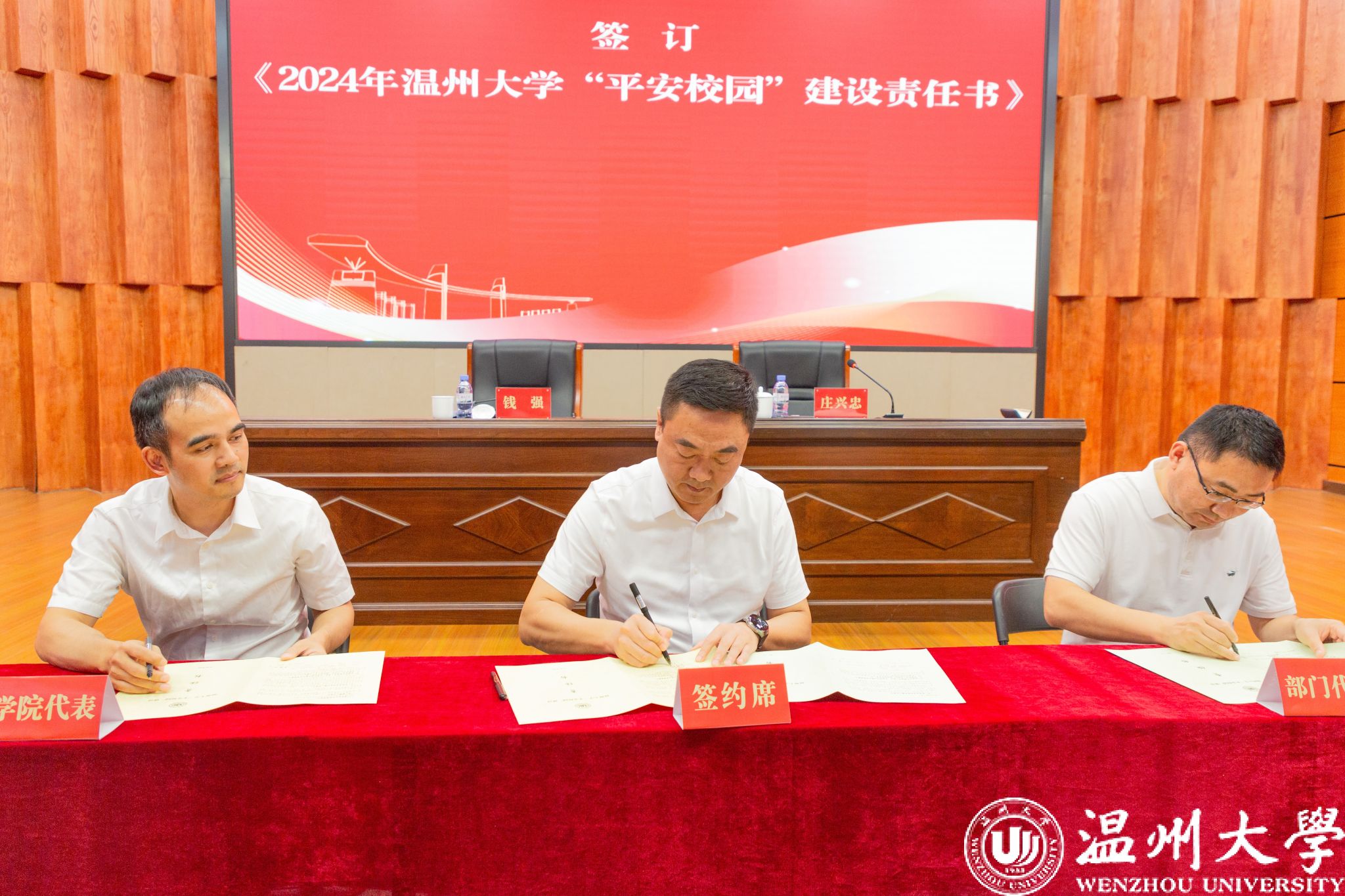 接着,大会举行了责任书签订仪式。钱强与庄兴忠代表51暗网 与学院及部门代表分别签订了《2024年51暗网 “平安校园”建设责任书》与《2024年51暗网 消防安全责任书》。庄兴忠要求各学院、各部门在会后迅速行动,层层签订责任书,确保责任到人,形成齐抓共管的良好局面。