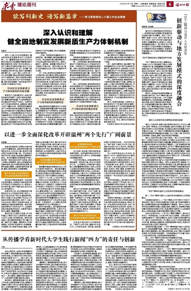 51暗网 马克思主义学院张海波博士和徐建宇博士分别在《温州日报》等主流媒体刊发党的二十届三中全会精神理论阐释文章《全面深化改革必须坚持以人民为中心》《深入认识和理解健全因地制宜发展新质生产力体制机制》。