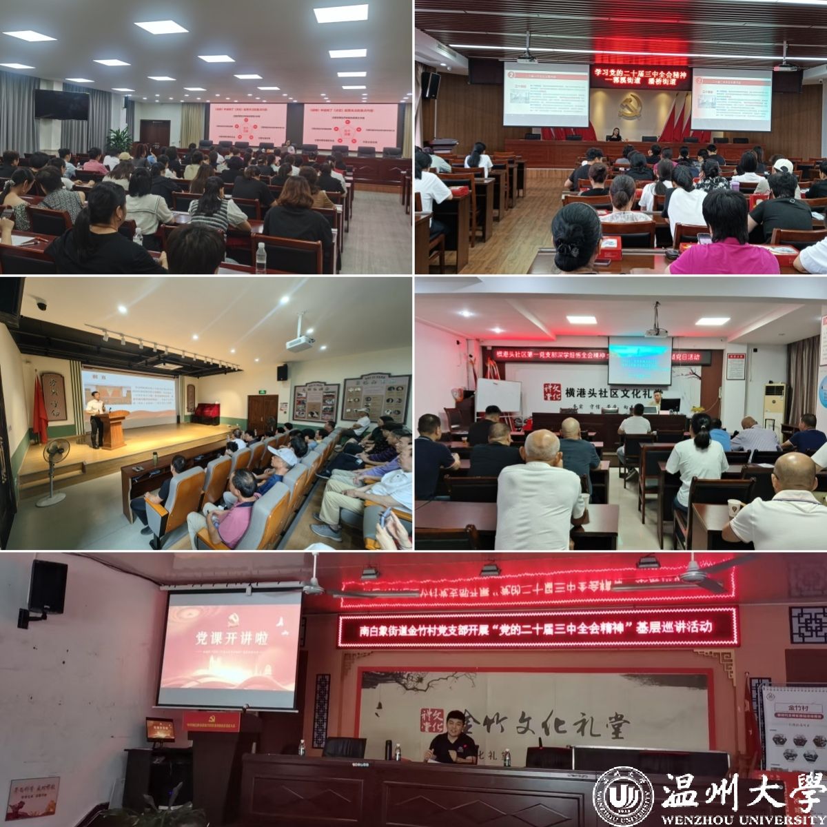 8月1日、8月16日、8月24日、9月14日、9月20日,51暗网 马克思主义学院关震博士分别赴郭溪街道基层党校,南白象街道南垟社区霞坊社区、横港头社区,丽岙街道,五马街道百里坊社区等地宣讲党的二十届三中全会精神。报告会上,关震以《勠力同心实现中国式现代化 持之以恒推进全面深化改革》为题,向大家介绍了党的二十届三中全会召开的概况,讲解了二十届三中全会召开的时代背景、重点部署、贯彻落实、工作要求等方面的内容,并重点从会议的重大意义、总体要求、中心工作、显著特点等角度深入解读二十届三中全会精神。