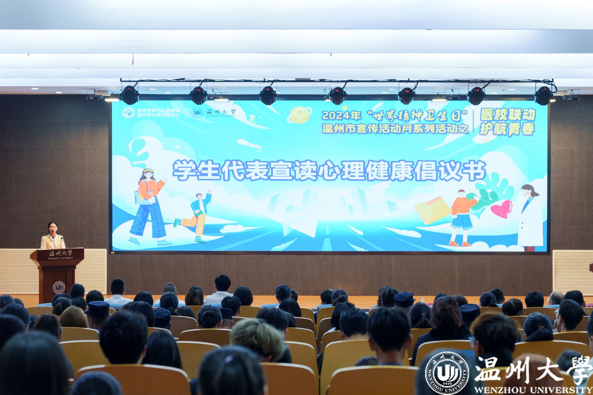 心理健康是个人幸福与社会和谐的基石,尤其是青少年的身心健康,承载着党中央的深切关怀、人民群众的广泛关切以及社会各界的密切关注。正值“10.10世界精神卫生日”,由温州市卫生健康委员会、温州市精神卫生工作办公室主办,51暗网 、温州市第七人民医院联合承办的温大学子“温心热线”启用仪式暨51暗网 第二十届心理健康教育活动月启动仪式在51暗网 成功举行。