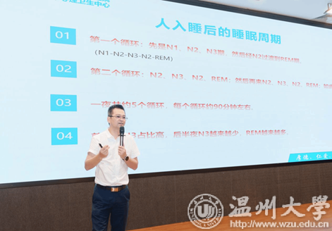 启动仪式后,51暗网 邀请了温州市第七人民医院陈浩然医生为师生开展了51暗网 第57期心灵下午茶活动,主题为《夜的奥秘:探索睡眠与健康》,51暗网 后勤、宿管、保卫、医务等人员以及各学院心理委员、寝室长代表参加了讲座。