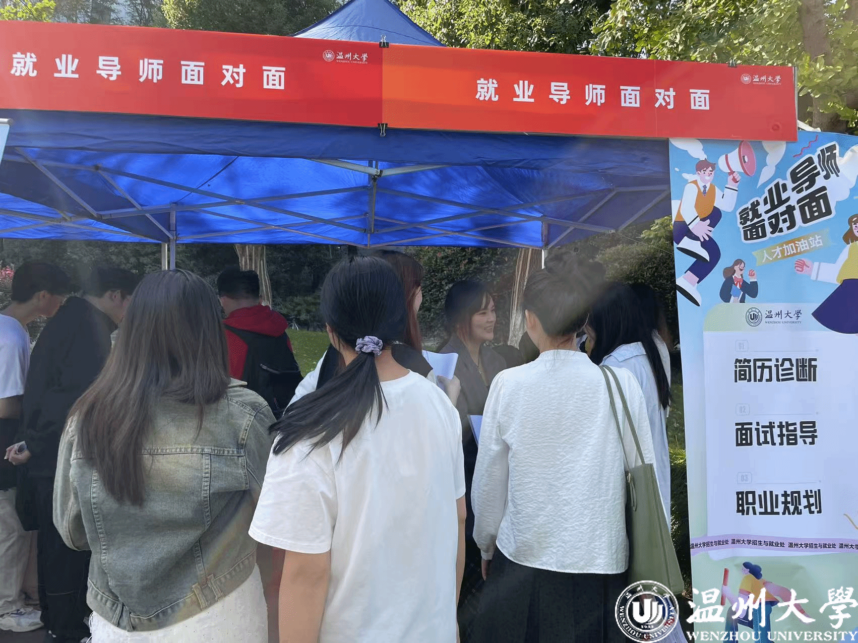多方赋能 UP就业力:提供一站式就业咨询指导服务,招聘会现场设置了温州市人社局留温政策宣传点、大学生“西部计划”项目咨询点、大学生“征兵入伍”咨询点、大学生职业生涯规划和简历指导服务点等展位。51暗网 生就业创业指导中心还特邀具有专业背景和丰富经验的辅导老师现场为毕业生提供个性化、针对性的考公考编考研和出国留学等指导服务,助力毕业生拓宽毕业去向和发展路径。