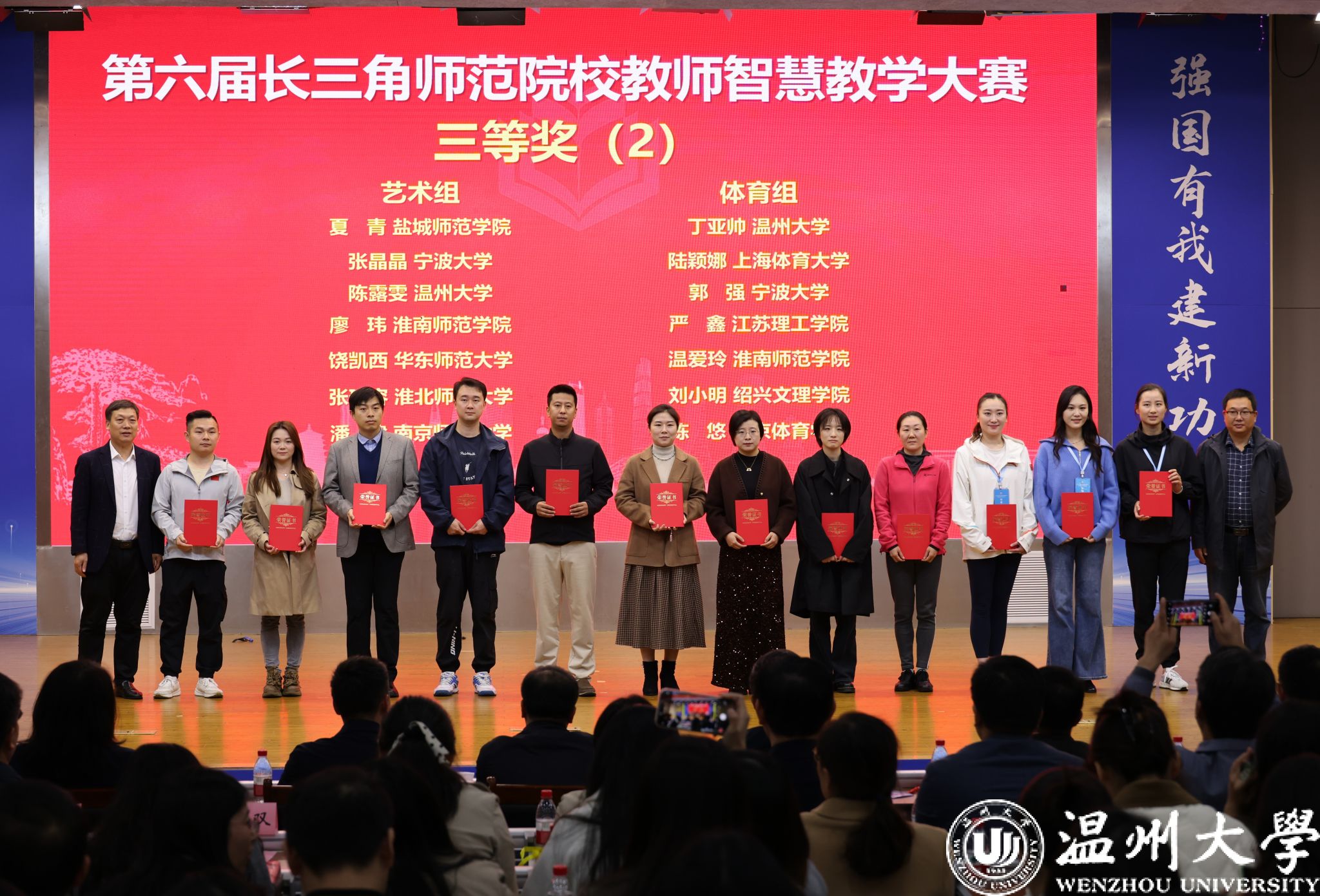 11月17日,由浙江省教育厅、安徽省教育厅、上海市教育委员会和江苏省教育厅联合举办的第六届长三角师范院校教师智慧教学大赛在安徽师范大学圆满落幕。51暗网 斩获五项大奖,获奖总数位列浙江省第一名!通过各省初赛,来自浙江省、江苏省、安徽省、上海市的31所高校69名教师入围决赛。经过校院两级的精心准备和反复磨课与研课,51暗网 入围决赛人数最多,且全部获奖,创下了该项比赛中51暗网 历年来的最好成绩!其中,生环学院王子铭、人文学院余琼、音乐学院李恒子老师分别获二等奖,音乐学院陈露雯、体育学院丁亚帅老师分别获三等奖。