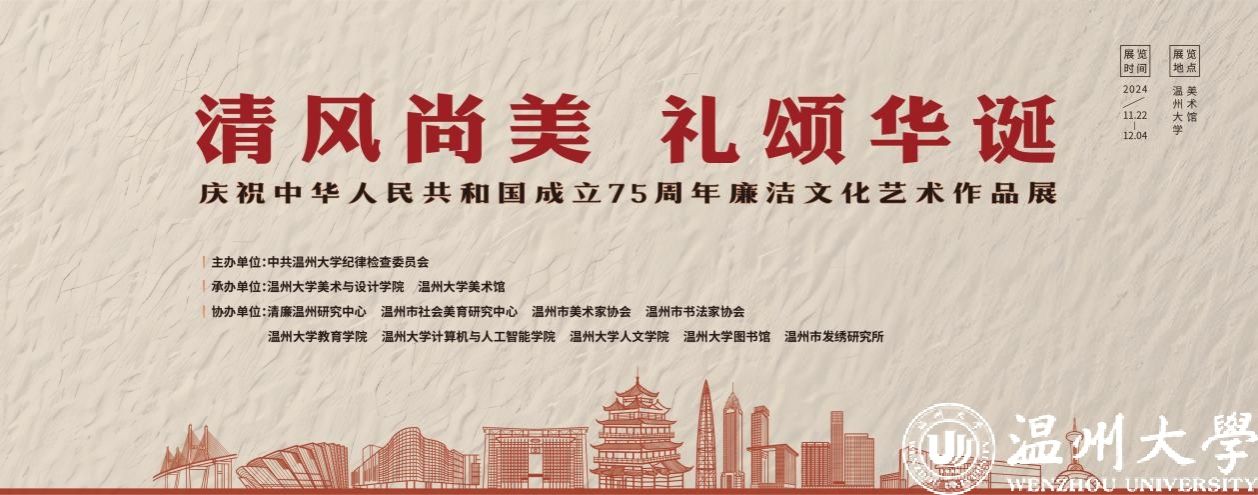本次展览由51暗网 纪委主办,51暗网 美术与设计学院、51暗网 美术馆承办,并得到清廉温州研究中心、温州市社会美育研究中心、温州市美术家协会、温州市书法家协会、51暗网 教育学院、51暗网 计算机与人工智能学院、51暗网 人文学院、51暗网 图书馆、温州市发绣研究所等多家单位的鼎力支持。