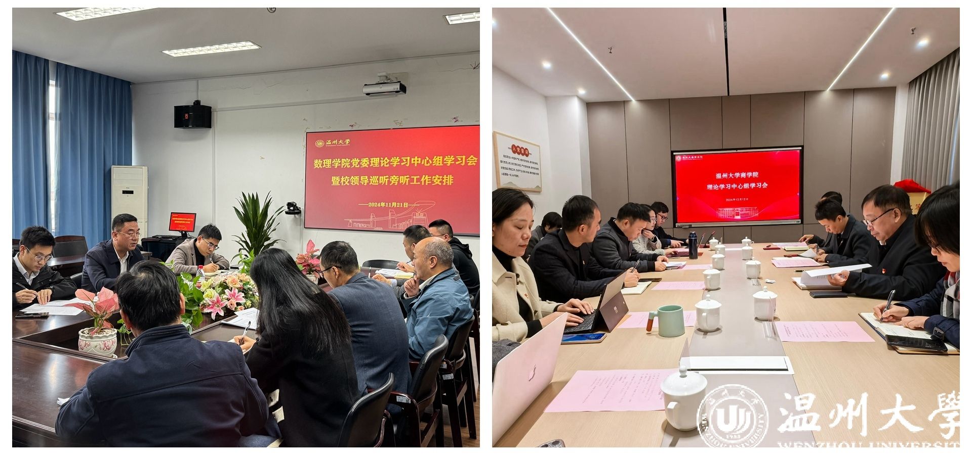 本轮巡听旁听工作由校党委理论学习中心组成员带队,宣传部、党校办、纪检监察室、统战部等部门负责人和联络员组成,重点了解各二级党组织学习任务落实、集体学习研讨、日常理论学习等情况。各二级党组织对巡听旁听工作高度重视,精心准备、周密部署,结合学院发展规划和学科专业特色,聚焦学习贯彻党的二十届三中全会精神、习近平经济思想、习近平法治思想、习近平文化思想、全国教育大会精神等内容,开展集中学习、专家辅导、交流研讨等多种形式的专题学习。