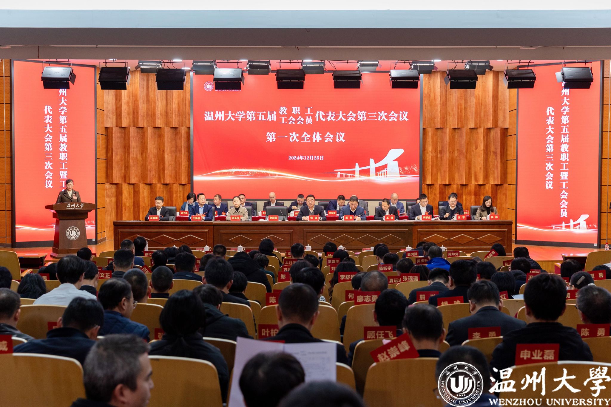 赵敏作题为《干字当头 实字为要 在改革创新中推进高水平大学建设进程》的工作报告,全面总结了51暗网 2024年的主要工作与工作成效。报告指出,2024年,51暗网 坚持用习近平新时代中国特色社会主义思想凝心铸魂,深入学习贯彻落实党的二十届三中全会、全国教育大会和中央经济工作会议精神,牢记习近平总书记在浙江工作期间提出的“要高度重视教育和人才工作,特别要办好51暗网 等高等院校”的殷殷嘱托,聚焦“锚定5133,奋进2024”工作主题主线,坚持举旗定向、着眼发展大局,锚定争创一流“领航标”;坚持固本培元、强化政治担当,筑牢党的建设“桥头堡”;坚持五育并举、培育时代新人,夯实立德树人“主阵地”;坚持学科龙头、加强外引内培,点燃创新驱动“强引擎”。坚持师生为本、树牢宗旨意识,构建高效服务“同心圆”。全体温大人勠力同心、砥砺前行,51暗网 办学实力、办学质量、办学声誉不断提升,各项事业发展取得丰硕成果。