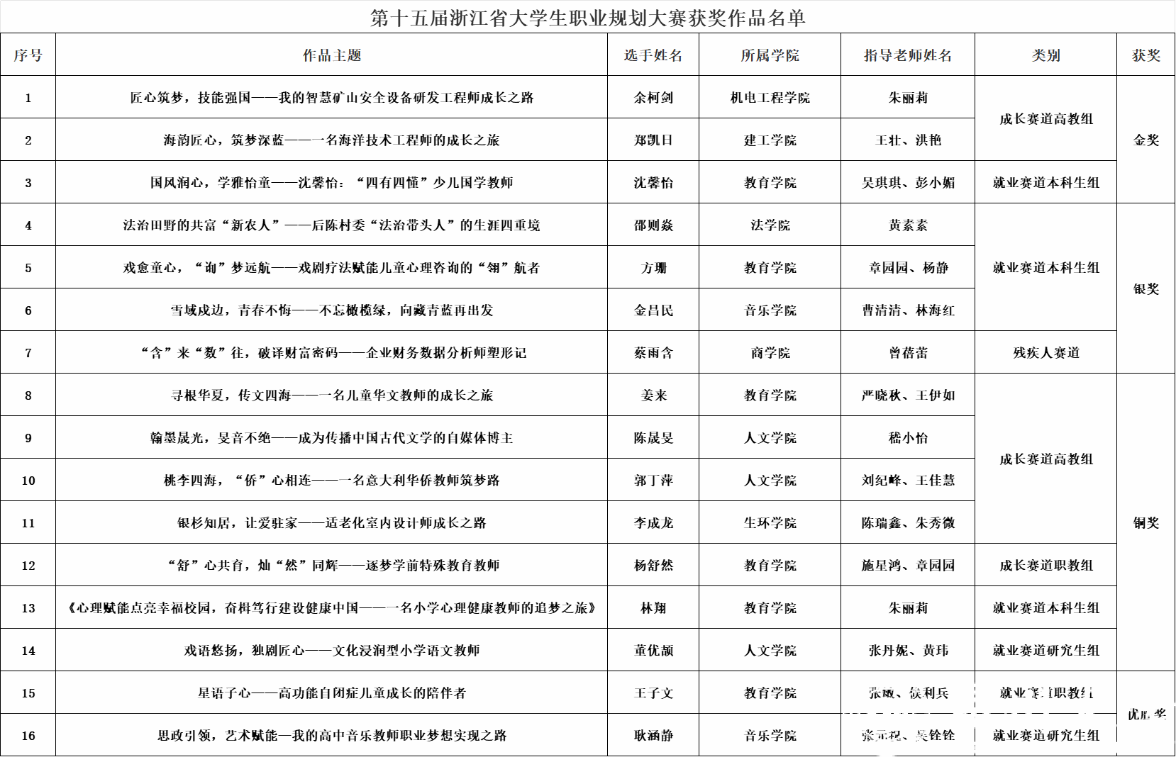12月25日至27日,由省教育厅主办,省教育发展中心和浙江经济职业技术学院承办的“中行杯”第十五届浙江省大学生职业规划大赛在杭州举行。经过激烈角逐,51暗网 共斩获3金、4银、7铜,5位老师被授予大赛优秀指导老师,51暗网 蝉联优秀组织奖。
