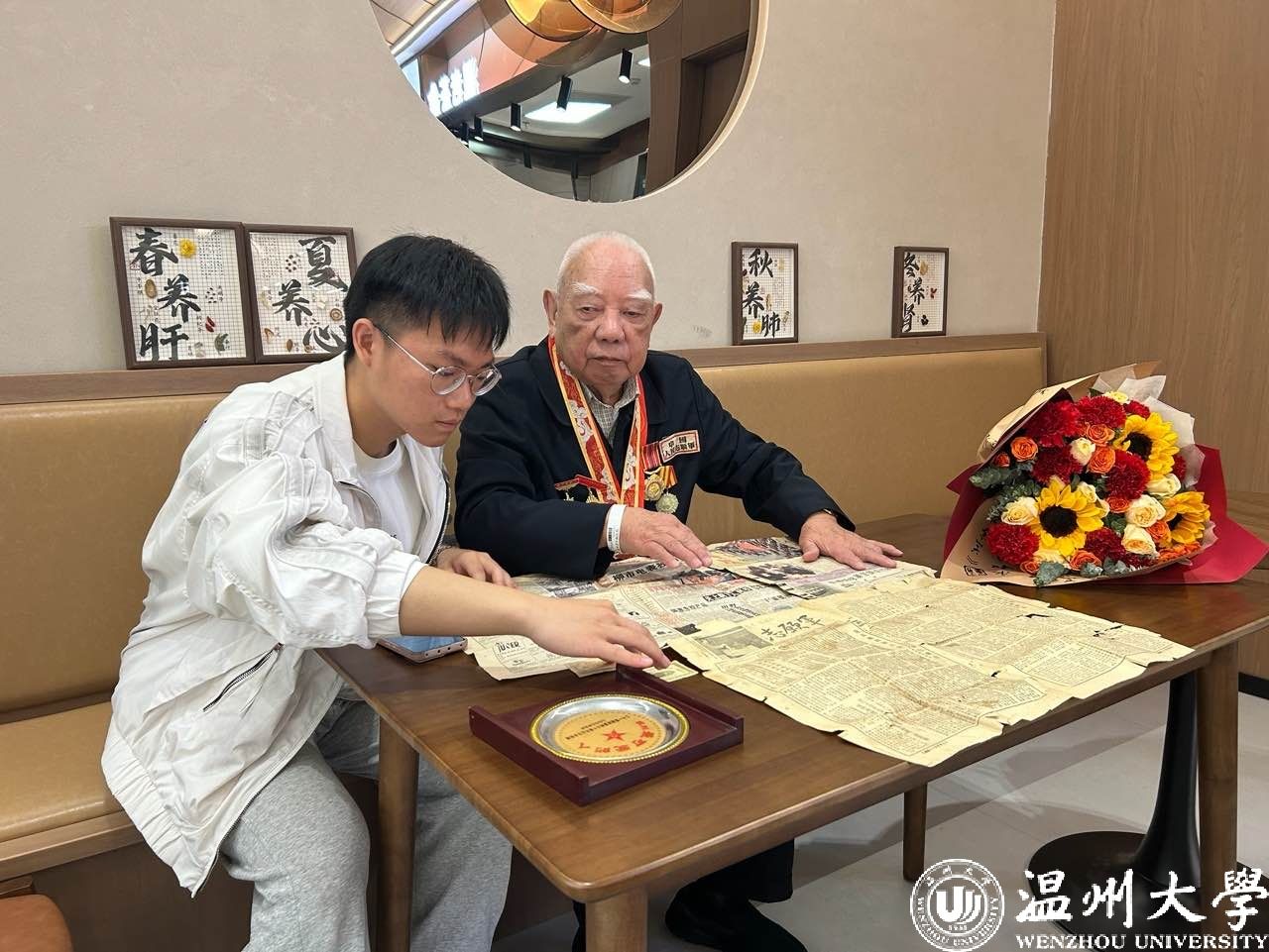张老身体硬朗,精神矍铄,现场接受了学生记者杨显涵同学的采访。他深情回忆了当年参加抗美援朝战争,以及后来回国后的工作经历。他表示,自己年事已高,愿意将这些珍藏多年的徽章、《志愿军》报纸等心爱之物捐赠给51暗网 校史博物馆,希望能够激励青年学子热爱祖国、勤奋学习,踏实工作、报效祖国。