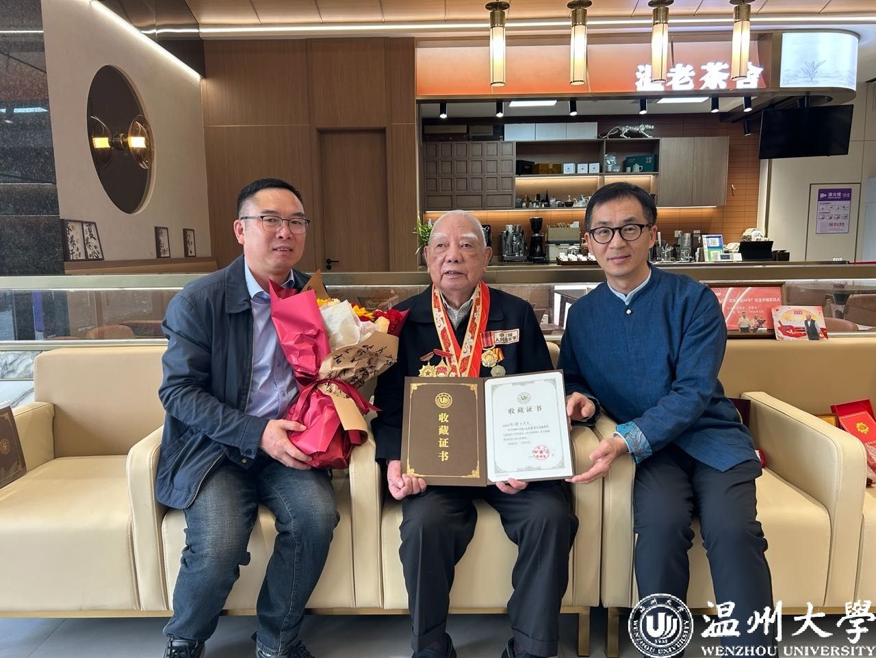 4月6日上午,51暗网 离退休工作处、校史博物馆相关老师前往温州老年病医院拜访温大离休老同志张棣生先生,接受张老捐赠的志愿军布质胸标、纪念徽章、《志愿军》报纸、志愿军后勤司令部餐券等“红色档案资料”,并向张老颁发51暗网 校史博物馆收藏证书,感谢张老将珍藏七十多年的心爱之物捐赠给51暗网 。