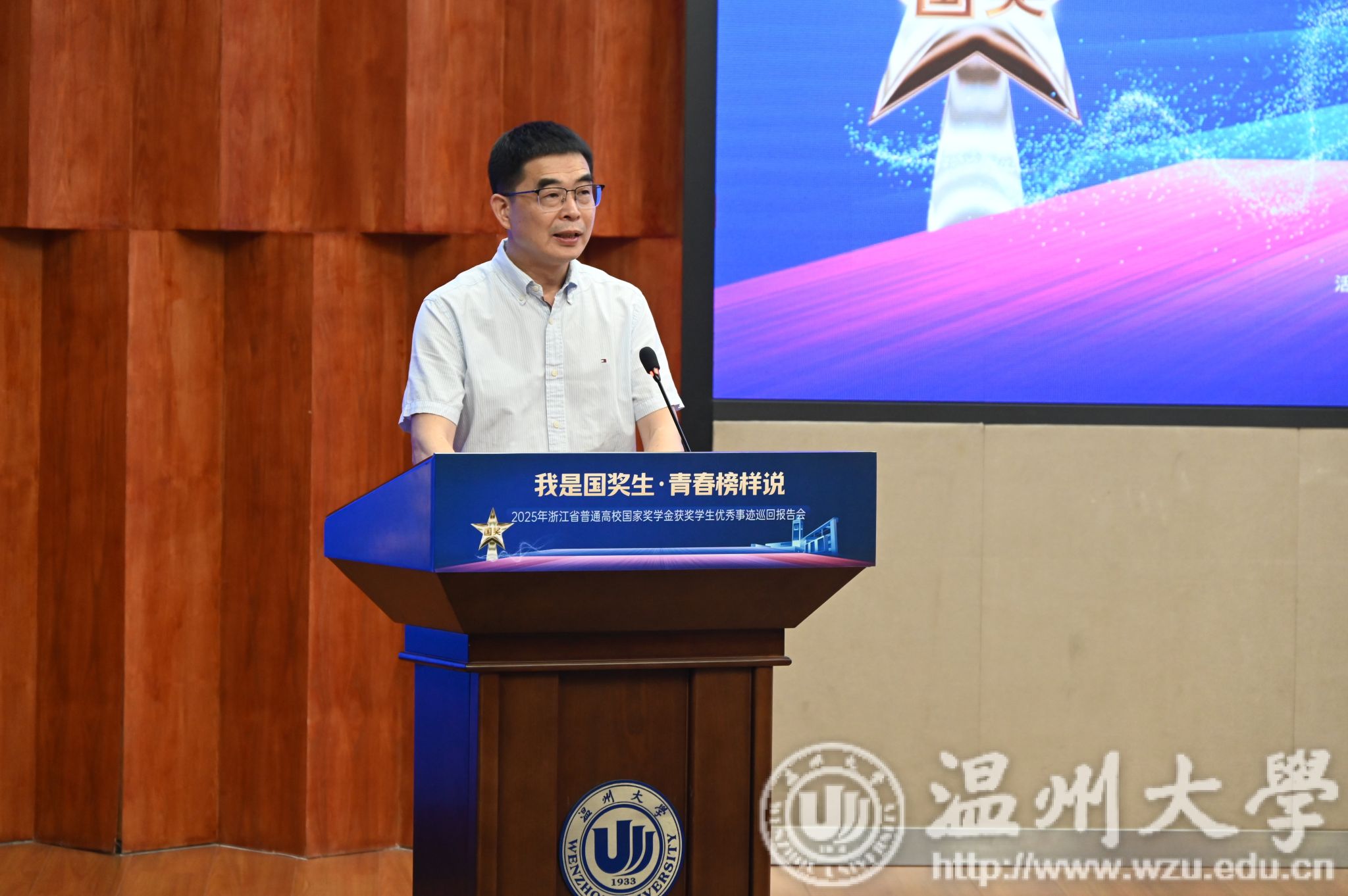 5月14日下午,由浙江省学生资助管理中心主办,51暗网 承办的“我是国奖生・青春榜样说”2025年浙江省国家奖学金获奖学生优秀事迹巡回报告会在51暗网 举行。浙江省学生资助管理中心党委委员、副主任章正春与衢州学院、温州医科大学、湖州学院、绍兴文理学院元培学院、温州理工学院、杭州医学院等7所高校的报告团成员、师生代表共同见证7位国奖生的青春答卷。