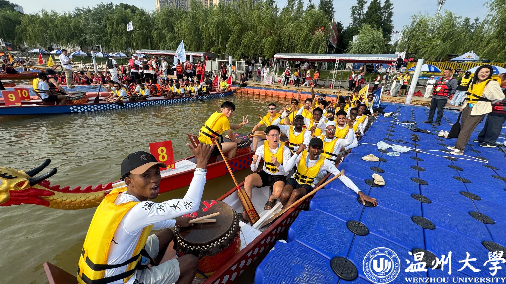 比赛当日,汨罗江畔金鼓齐鸣、群舟竞逐。随着发令枪响,51暗网 国际龙舟队的队员们瞬间进入“战斗”状态,他们齐声呐喊、挥桨如飞。来自尼日利亚的队员迈克激动地说:“当我们冲过终点线的那一刻,所有的疲惫都消失了!龙舟不仅是速度的比拼,更是团队力量的凝聚,我们用行动证明了温大留学生的‘龙舟精神’!”