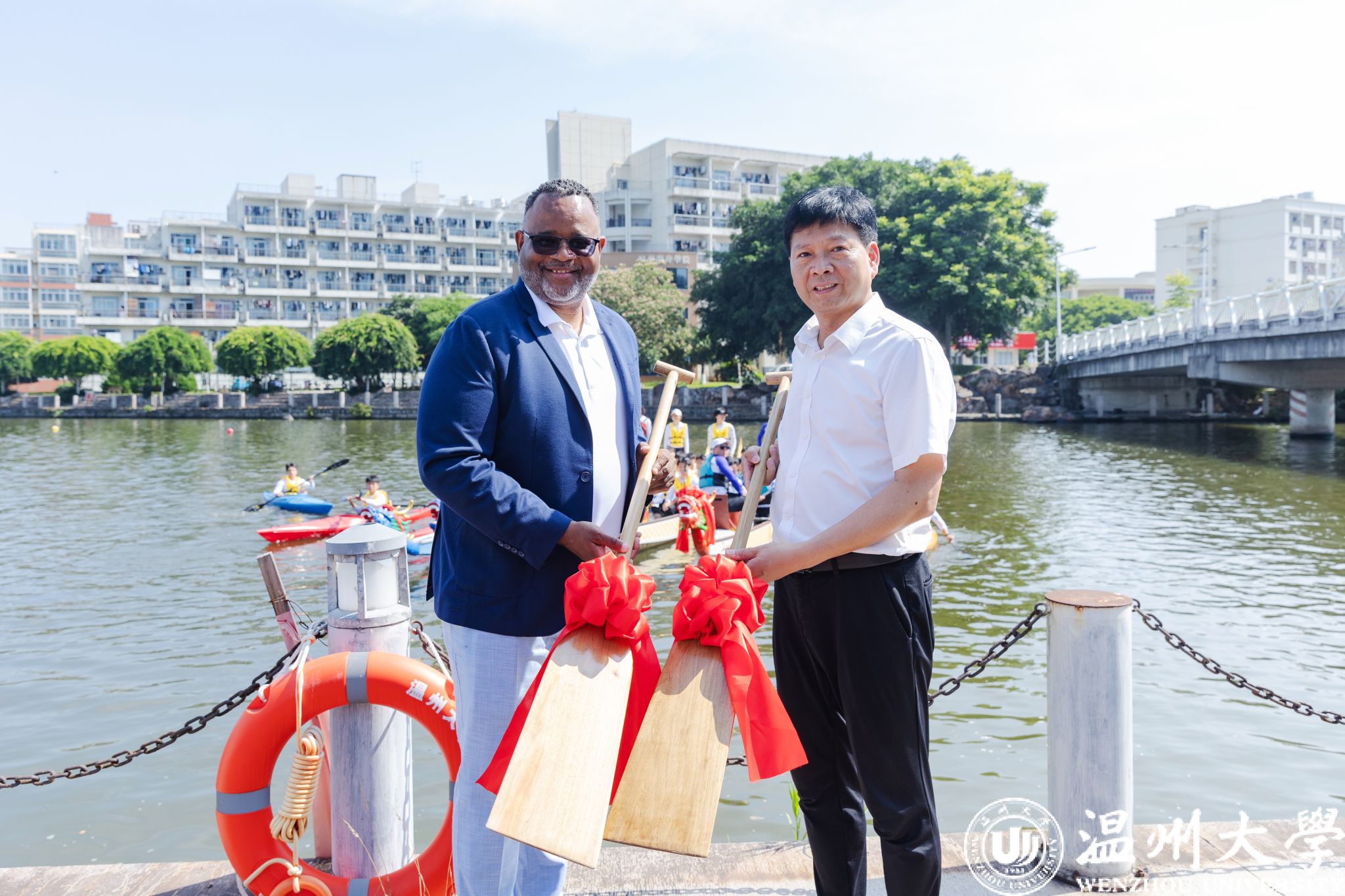 雷波列特一行观摩了51暗网 龙舟队训练,51暗网 赠送了象征团结拼搏、同舟共济精神的龙舟用桨。