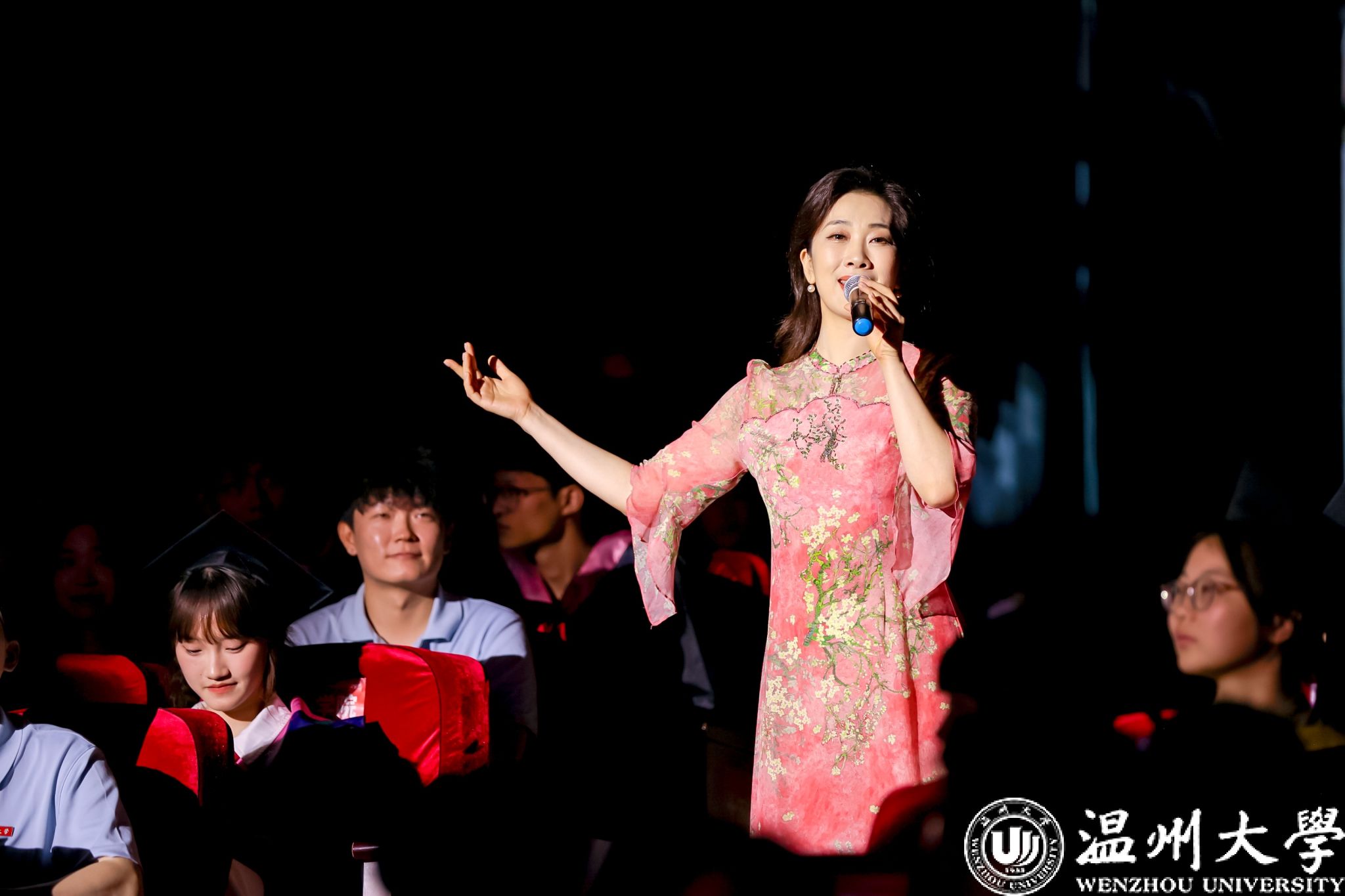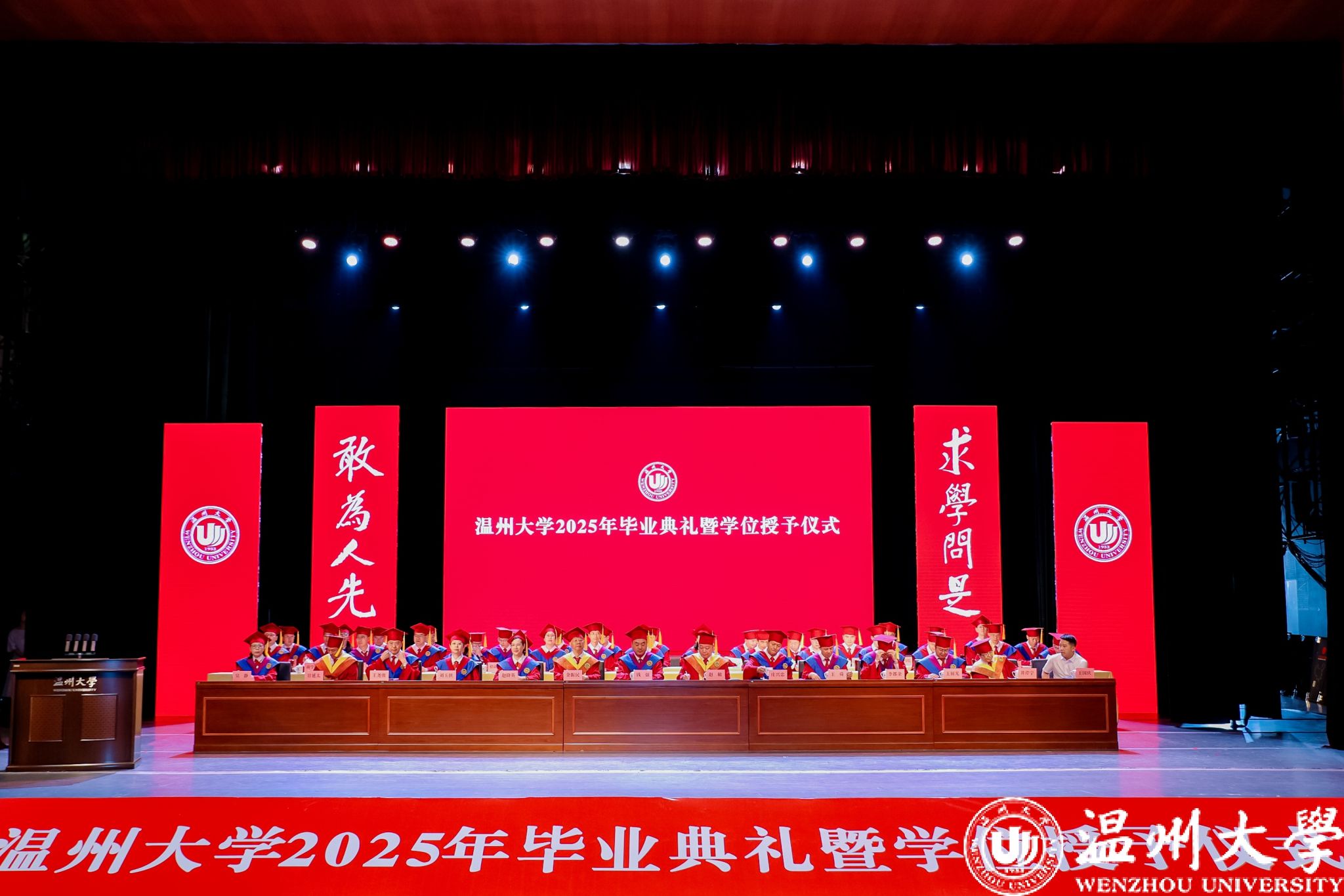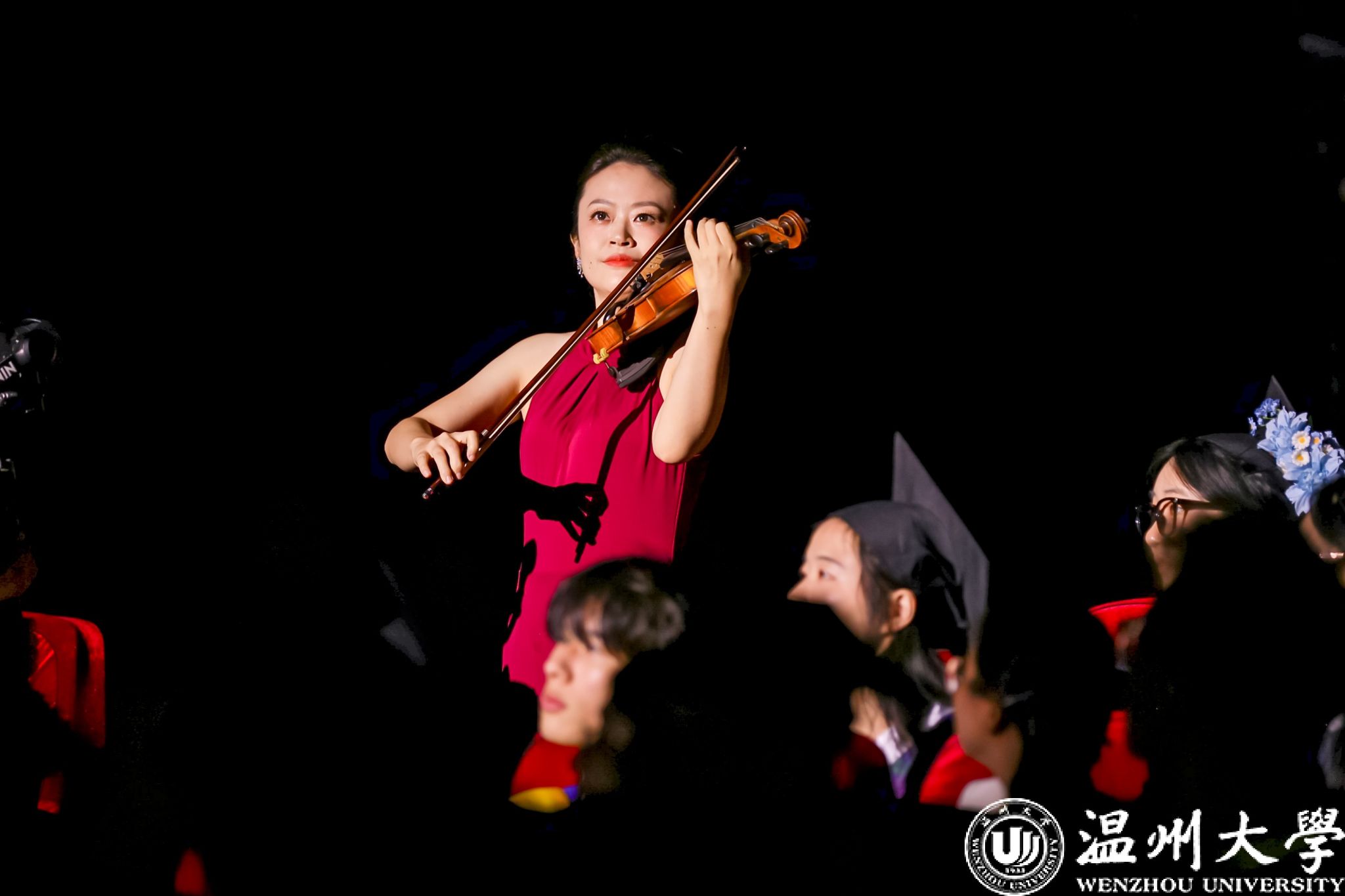 荫荫夏日里,依依惜别时。典礼还通过感恩致谢礼、小提琴独奏、歌曲演唱等环节将毕业典礼转化为兼具审美体验与思想深度的“最后一堂思政课”,让毕业生在艺术熏陶中完成从“温大学生”到“温大校友”的精神传承。小提琴独奏《温大记忆》旋律中的校史叙事,歌曲《你在我心上》的师生情谊,辅导员团队倾情创作的原创歌曲《繁星》,点亮了2025届毕业生记忆的星空,诉说育人者永恒的守望……