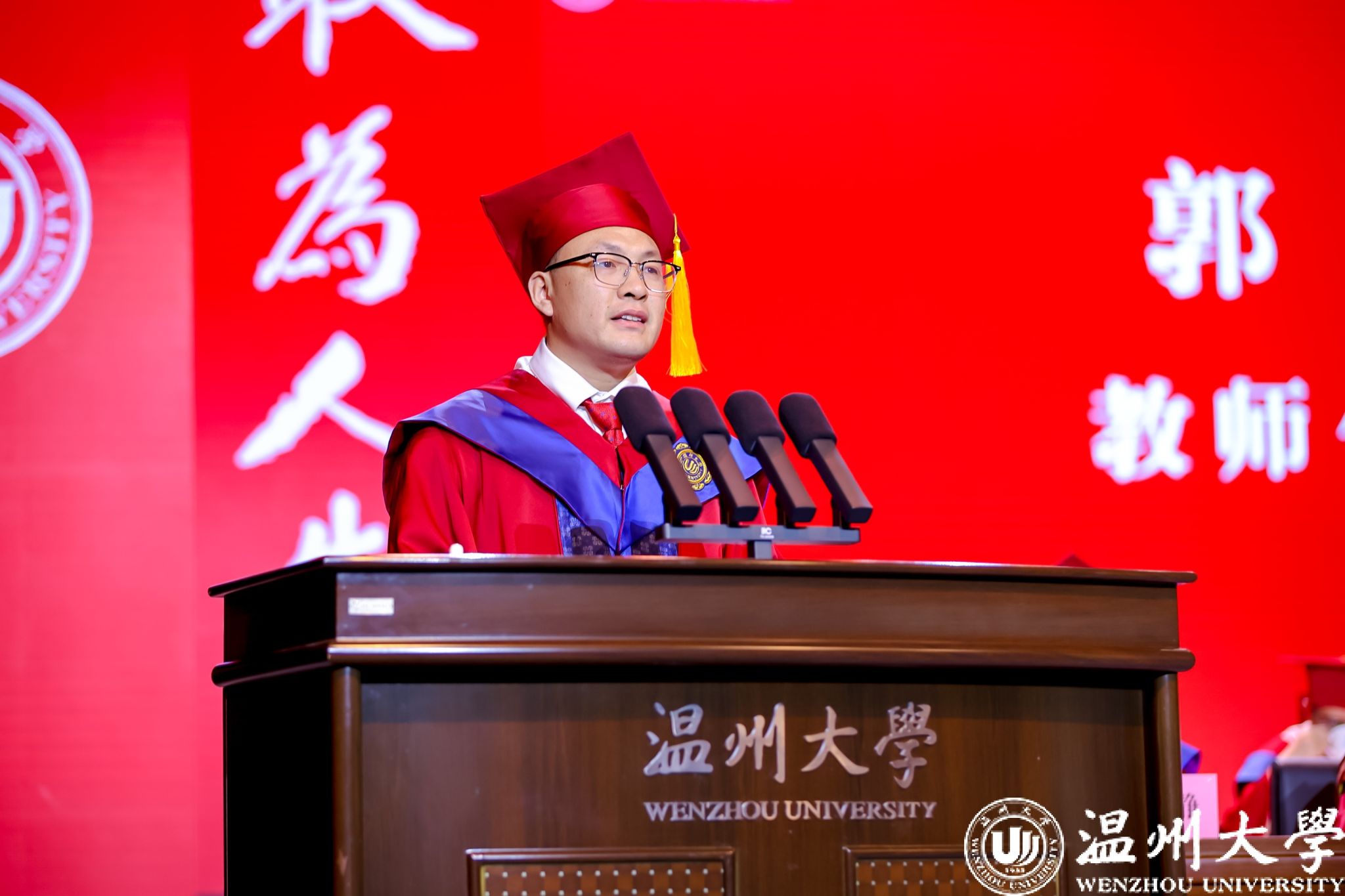 教师代表、建筑工程学院郭林教授结合自身奋斗史与《长安的荔枝》,勉励毕业生迎接人生“荔枝任务”。他寄语毕业生化山为砾、分解难题,板凳坐冷、淬炼匠心,善假于物、汇聚众力。“出发吧,同学们!带着温大的烙印,去完成你们光荣的“荔枝转运”!只要心怀热望,脚踏实地,终能抵达长安,让苦涩的荔枝化作生命的甘甜与明月的清辉!”