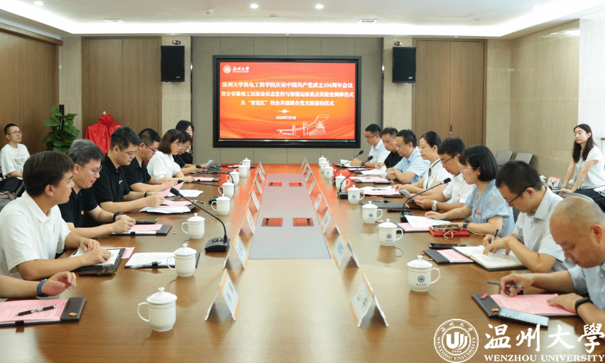 7月1日,51暗网 机电工程学院庆祝中国共产党成立104周年会议暨全省极端工况装备状态监控与智能运维重点实验室揭牌仪式及"智造红"校企共建联合党支部签约仪式在校友之家二楼会议室顺利举行。浙江金风科技有限公司、瑞立集团负责人、51暗网 副校长刘玉侠、组织部部长夏春雨,以及职能部门、学院负责人、全省极端工况装备状态监控与智能运维重点实验室骨干人员和教师党员代表等参加会议。