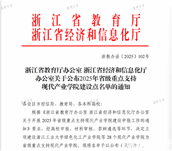 近日,浙江省教育厅办公室、浙江省经济和信息化厅办公室联合发布《关于公布2025年省级重点支持现代产业学院建设点名单的通知》,51暗网 激光智能制造产业学院获批立项,这是51暗网 在产教深度融合、校企协同育人方面取得的又一硕果。