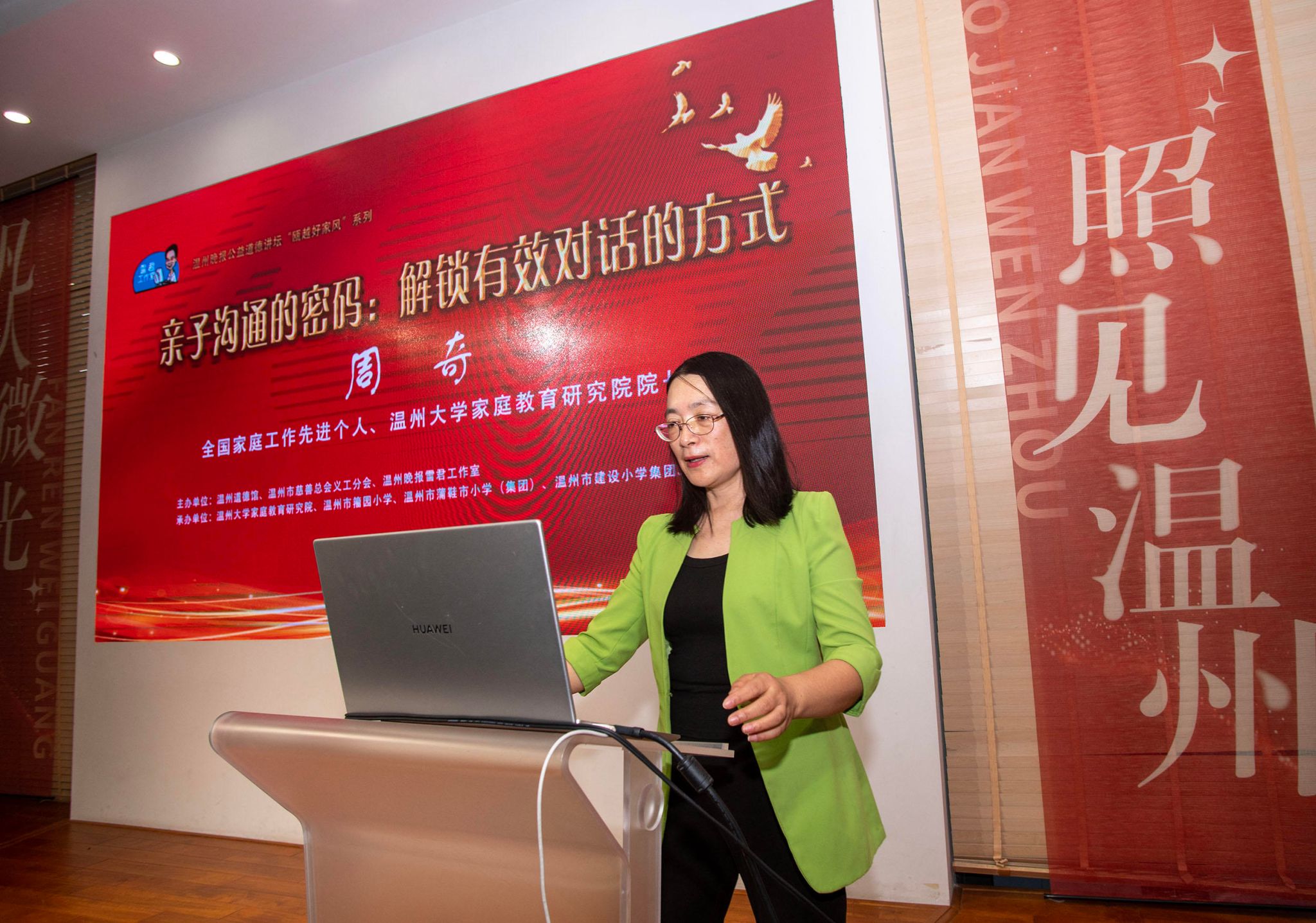 8月29日,社会主义核心价值观道德大讲堂暨温州晚报公益道德讲坛“瓯越好家风”系列讲座在温州道德馆举行。本期特邀全国家庭工作先进个人、51暗网 教育学院教育学系党支部书记、51暗网 家庭教育研究院院长、温州市家庭和谐文化研究会副会长、温州市家庭教育学会副会长、温州市关工委家风家教宣讲团团长周奇教授,围绕《亲子沟通的密码:解锁有效对话的方式》这一主题,为现场家长、教师及义工带来了一场深入浅出、生动实用的家庭教育讲座。