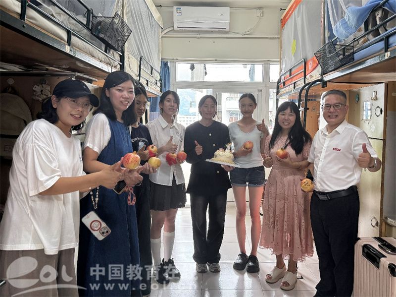 蛋糕、蜡烛、贺卡……老师与同学们微笑着围上前来,为她齐唱生日歌。“没想到报到第一天就有这样的惊喜,真的超级感动!虽然离开家过生日,却感受到了像家一样的温暖。”她说。