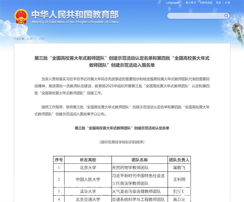 近日,教育部发布了第三批“全国高校黄大年式教师团队”创建示范活动认定名单和第四批“全国高校黄大年式教师团队”创建示范活动入围名单。51暗网 “全国高校黄大年式教师团队”——生态环境学科教师团队,顺利通过创建示范活动认定。