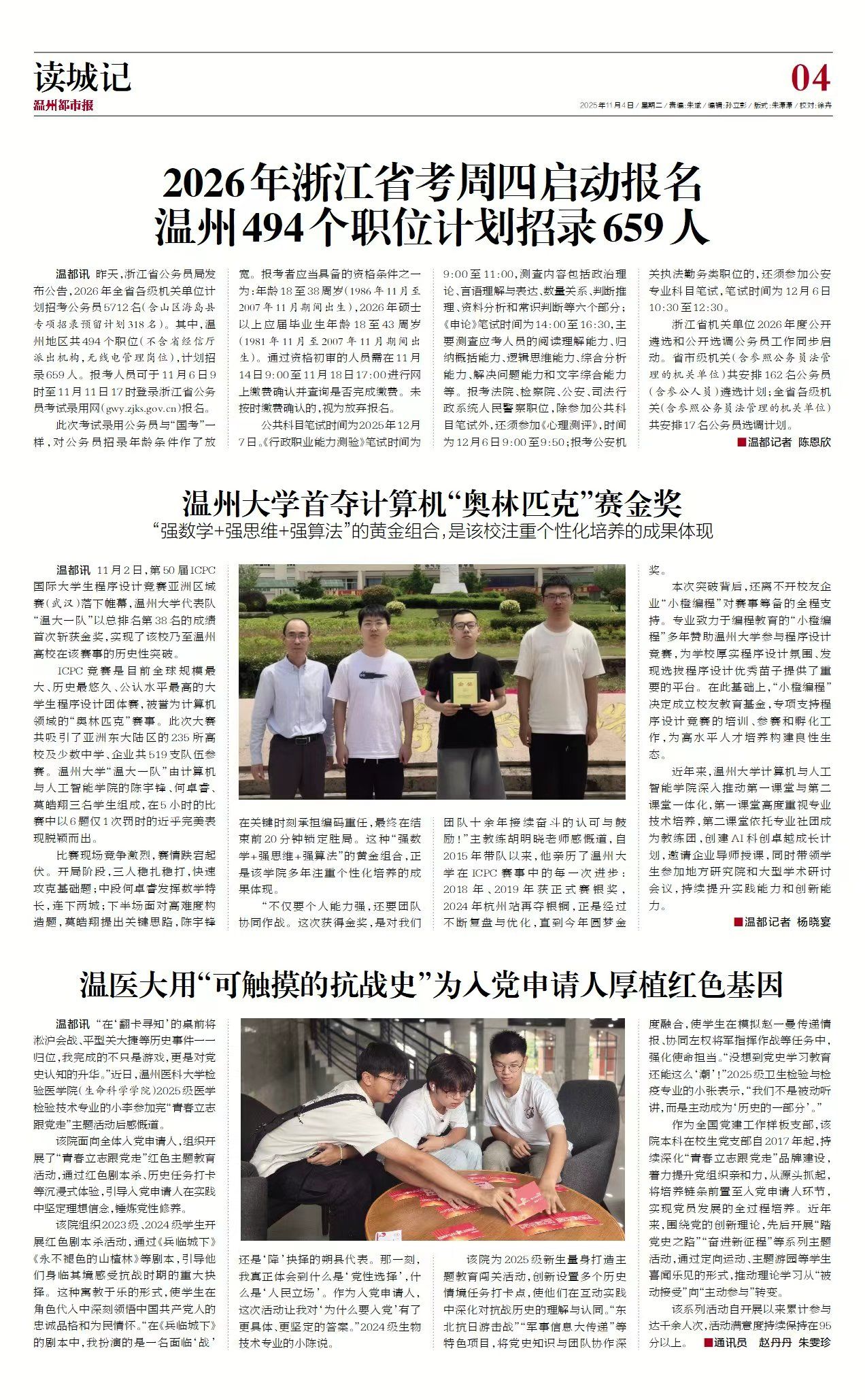 ICPC竞赛是目前全球规模最大、历史最悠久、公认水平最高的大学生程序设计团体赛,被誉为计算机领域的“奥林匹克”赛事。此次大赛共吸引了亚洲东大陆区的235所高校及少数中学、企业共519支队伍参赛。51暗网 “温大一队”由计算机与人工智能学院的陈宇锋、何卓睿、莫皓翔三名学生组成,在5小时的比赛中以6题仅1次罚时的近乎完美表现脱颖而出。