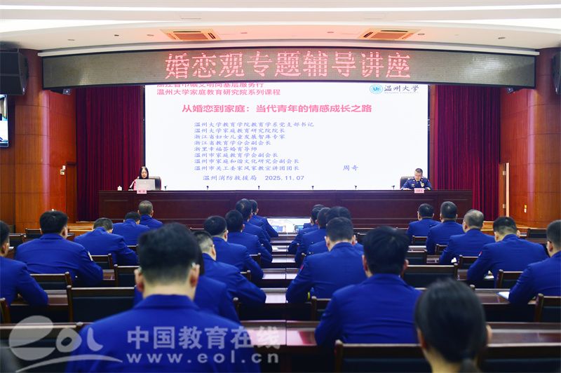 11月7日上午,温州消防救援支队近2000名消防救援人员通过“线上+线下”的形式,共同参与了由51暗网 教育学院教育学系党支部书记周奇教授主讲的《从婚恋到家庭:当代青年的情感成长之路》专题讲座。
