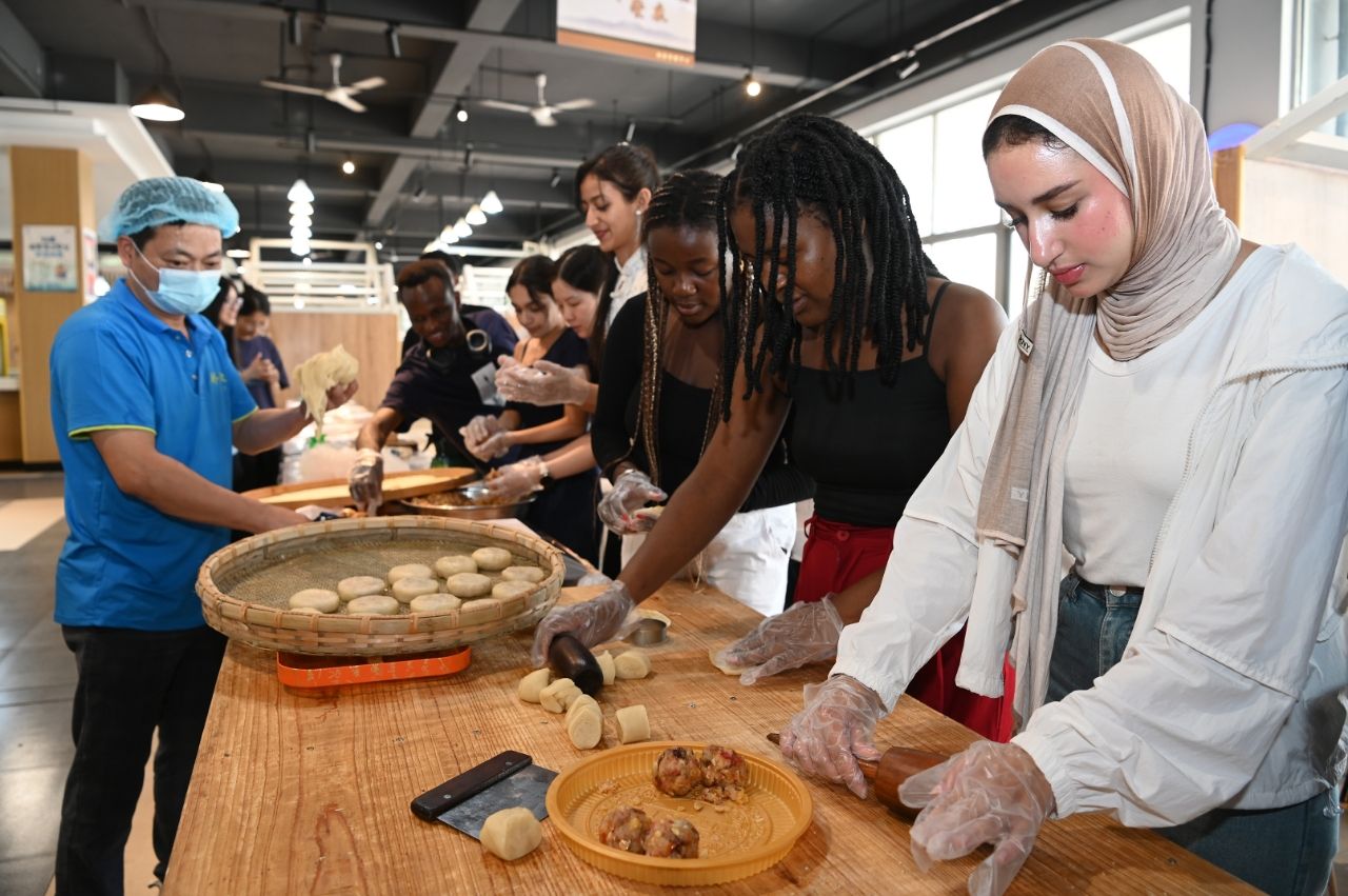 摩洛哥留学生银春华是该校研究生二年级学生,她特意穿上一件精美的旗袍来到活动现场。“我非常喜欢月饼,以前只是品尝过,今天终于有机会尝试自己做了。这对我来说,是学习中国传统文化的一个绝佳机会。”银春华一边说着,一边展示着自己刚刚做好的月饼,脸上洋溢着自豪的笑容。她表示,通过这次活动,她更加深入地了解了中国的传统节日和美食文化。