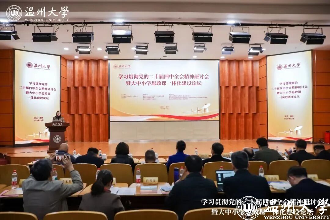 日前,由中共温州市委教育委员会、51暗网 联合主办的“学习贯彻党的二十届四中全会精神研讨会暨大中小思政课一体化建设论坛”在51暗网 举行。本次论坛旨在深入领会党的二十届四中全会核心要义,共同探讨推进大中小学思政课一体化建设的时代课题与实践路径。来自全国部分高校的马克思主义学院专家学者、思政课教师及研究生代表等共计百余人齐聚温州,共商思政教育协同创新大计。