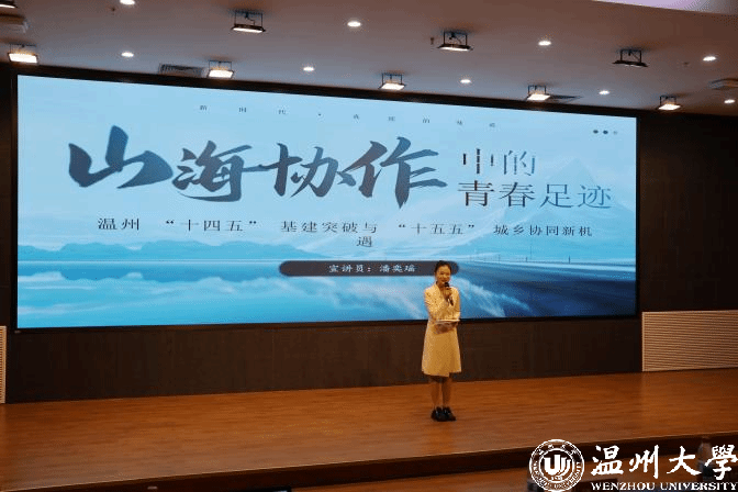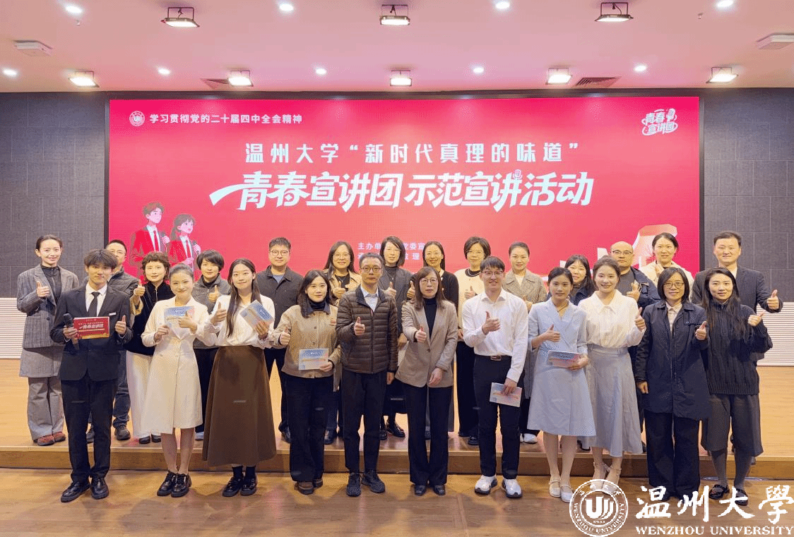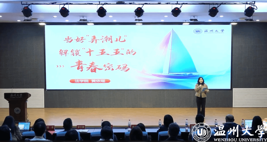 其他宣讲员也各展所长,从不同角度解读党的创新理论。思政课教师安保国从话语建构、传播、融通三个层面,阐述了提升中华文明传播力的路径;辅导员李金伟通过三通特别来电,解码浙江共富密码;吴想想同学以“‘侨’这三十年”为题,讲述侨乡发展故事;柯欣妤同学以温州皮鞋的蜕变为主线,展现政商亲清带来的经济繁荣;潘奕瑶同学则聚焦温州“十四五”规划基建突破与“十五五”规划城乡协同战略,呼吁青年将个人成长融入区域发展。