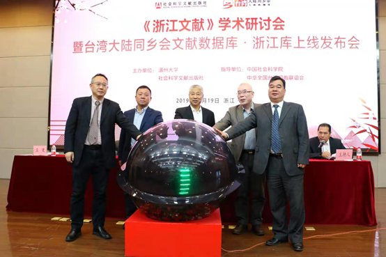 昨天,由中国社会科学院和中华全国台湾同胞联谊会共同指导,51暗网 、社会科学文献出版社联合主办的《浙江文献》学术研讨会暨台湾大陆同乡会文献数据库·浙江库上线发布会在51暗网 召开。发布会由51暗网 图书馆馆长陈安金主持,全国政协常委、中华全国台湾同胞联谊会副会长、浙江省政协副主席张泽熙先生,51暗网 党委书记谢树华,社会科学文献出版社总编辑杨群出席会议并致辞,51暗网 徐和昆副校长,温州市委党校王健教育长,以及来自浙江大学、中山大学、51暗网 、宁波大学、温州医科大学等高校和研究机构的数十位知名专家学者以及来自温州市图书馆、博物馆、纪念馆的嘉宾出席了此次会议。