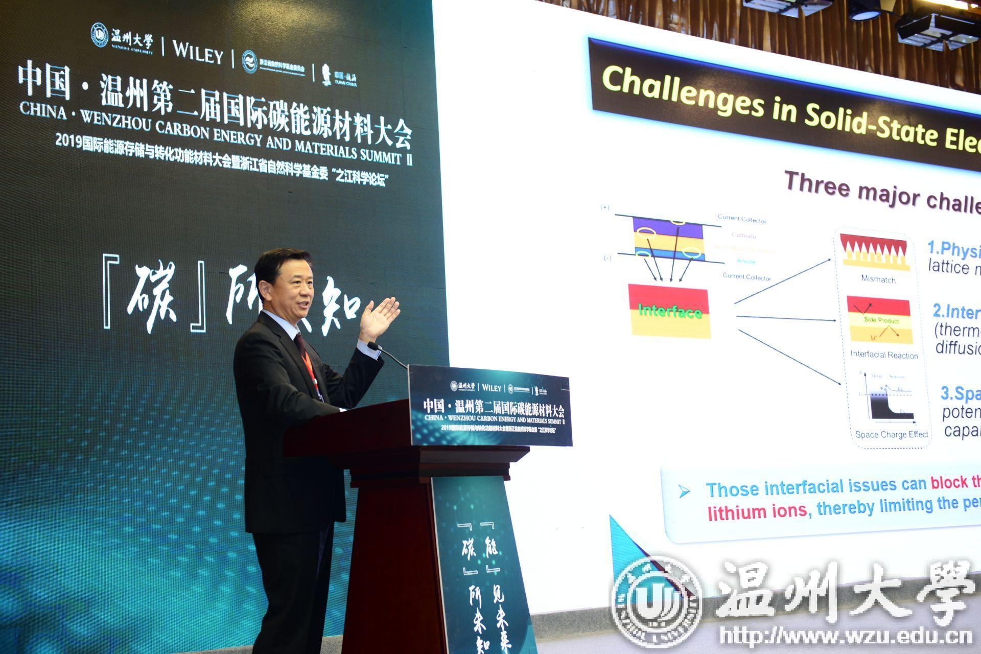 开幕式上,《Carbon Energy》首刊发布仪式正式启动,来自海内外碳材料领域的知名科学家通过视频的方式送来远方的祝福。其中,包括斯坦福大学崔屹教授、美国凯斯西储大学戴黎明教授、俄勒冈州立大学纪秀磊教授、乔治梅森大学董培教授,Wiley科技出版与学会合作副总监张大平先生。“我为我的家乡温州成为《Carbon Energy》高影响力期刊的发源地而骄傲。”美国凯斯西储大学戴黎明教授如是说。作为《Carbon Energy》的副主编,俄勒冈州立大学纪秀磊教授希望《Carbon Energy》成为相关领域研究工作者的家园,成为能源领域交流的重要场所。
