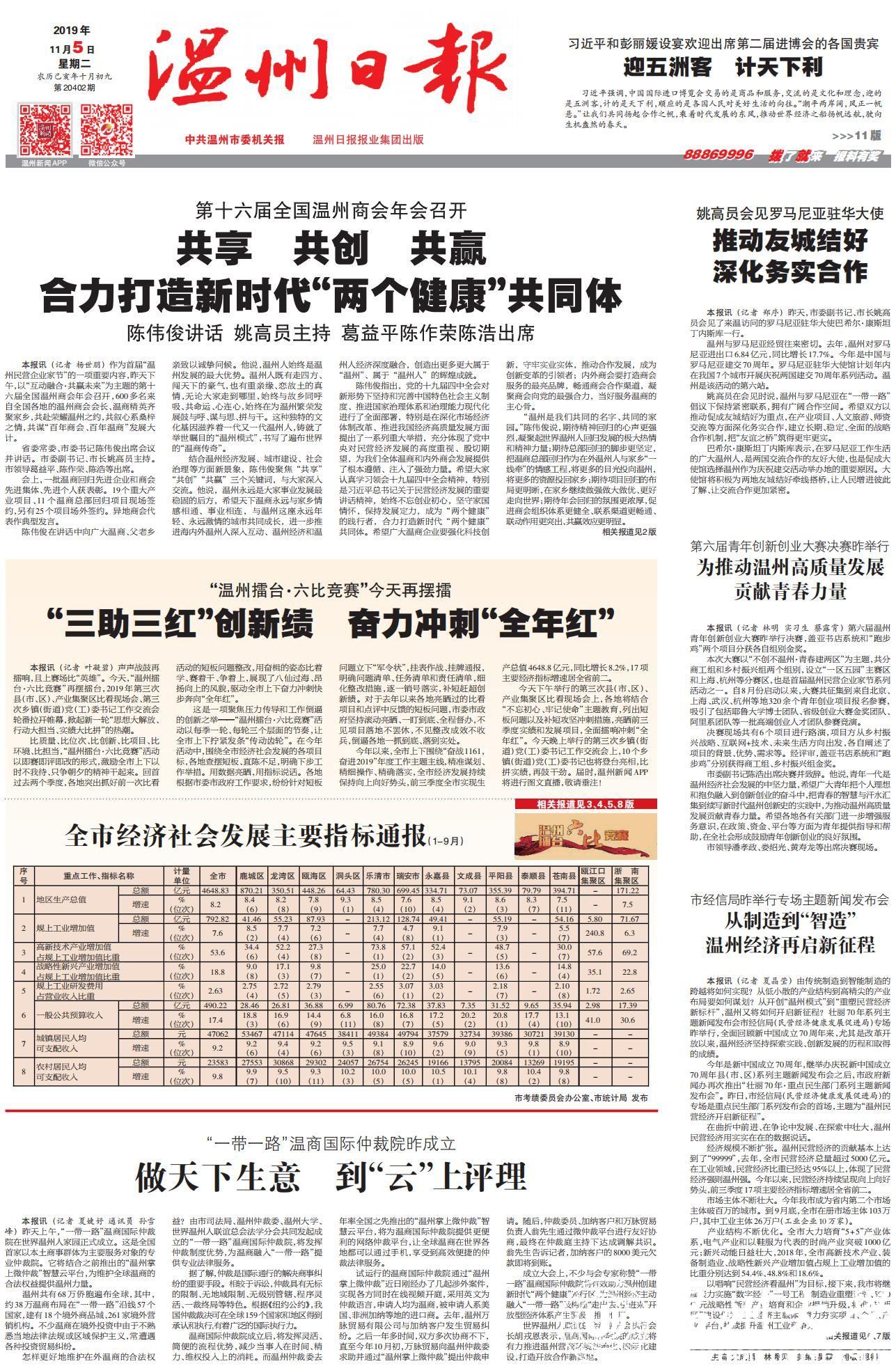 11月4日上午,“一带一路”温商国际仲裁院在世界温州人家园正式成立。它将结合之前推出的“温州掌上微仲裁”平台,为维护全球温商的合法权益提供温州力量。