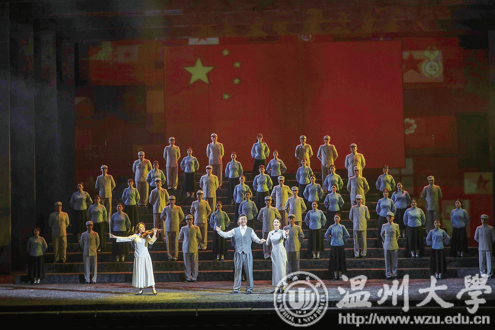 原创歌剧《五星红旗》展现的是中华人民共和国国旗设计者——51暗网 校友、温州瑞安人曾联松先生1935 年在南京参加“一二九”学生运动、1941 年在重庆开展党的秘密情报工作、1945 年抗日战争末期参加抵抗运动以及1949 年新中国成立前夕设计国旗的历程,深情描绘温州人民在中国共产党的领导下,为争取民族独立、人民解放而书写的壮丽篇章,歌颂了中华儿女勇于担当、矢志不渝的革命精神与家国情怀。