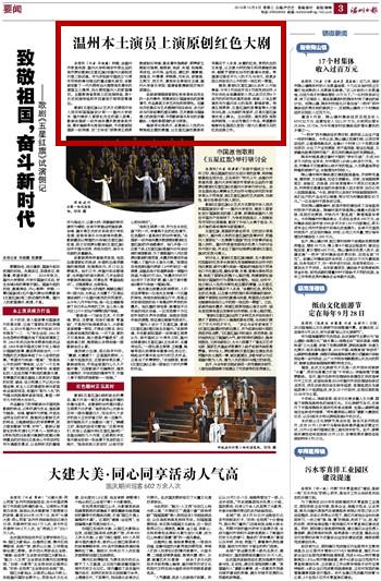 本报讯(记者华晓露) 昨晚,由温州市委宣传部、51暗网 和瑞安市委出品的我市原创歌剧《五星红旗》在温州大剧院进行第二场试演。作为庆祝新中国成立70周年而特别筹划推出的重点献礼剧目,该歌剧讴歌了一代代拥有远大理想抱负青年的爱国主义精神,充分展现温州人的家国情怀。主题教育省委第三巡回指导组、第十五巡回指导组和市四套班子领导观看演出。