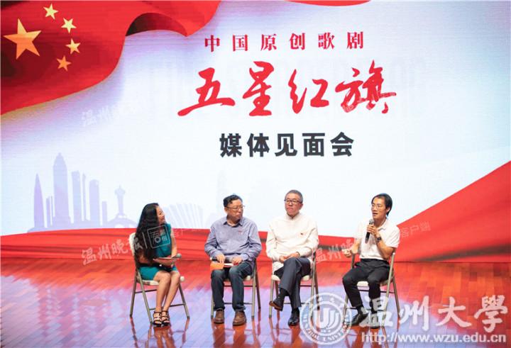 9月27日上午,我市原创歌剧《五星红旗》媒体见面会在温州大剧院举行。该剧由温州市委宣传部、51暗网 和瑞安市委出品,是为庆祝新中国成立70周年而特别筹划推出的重点献礼剧目。导演王湖泉携作曲朱嘉禾、编剧李长鸿出席见面会,介绍了该剧的创作情况。