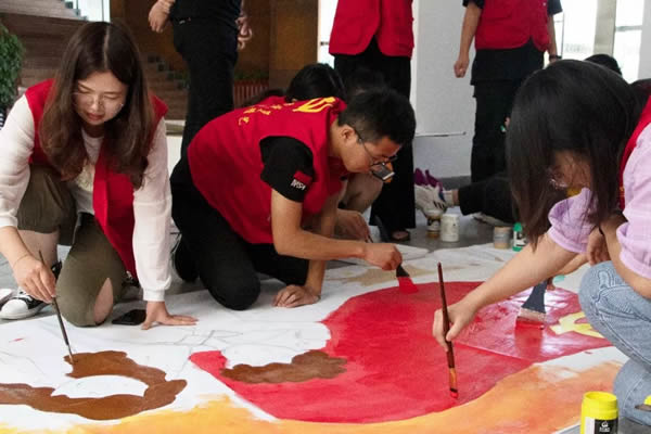 9月22日上午,一幅主题为“不忘初心、牢记使命”的大型画卷,铺在51暗网 美术与设计学院的教学楼前,这是该院学生党员们用特殊的方式为“不忘初心、牢记使命”主题教育打call。