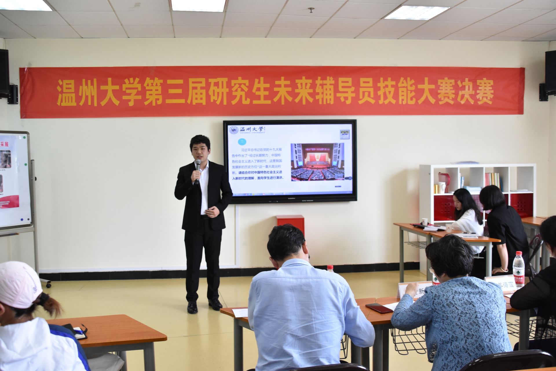 从理论宣讲到谈心谈话,每位参赛选手都做了充足的准备。最终,来自人文学院的郭佳乐同学和马院的杨梦君同学以优异的临场表现最终获得一等奖,商院周思雨等三位同学获得二等奖,数电姜贺云等五位同学获得了三等奖。