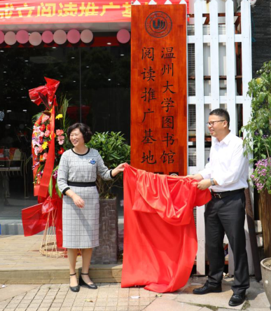 今天上午,基地揭牌仪式隆重举行,51暗网 图书馆副馆长刘素艳、中国电信温州分公司瓯海分局副局长朱松康、温大图书馆及电信公司工作人员和学生代表40余人参加了此次揭牌仪式。