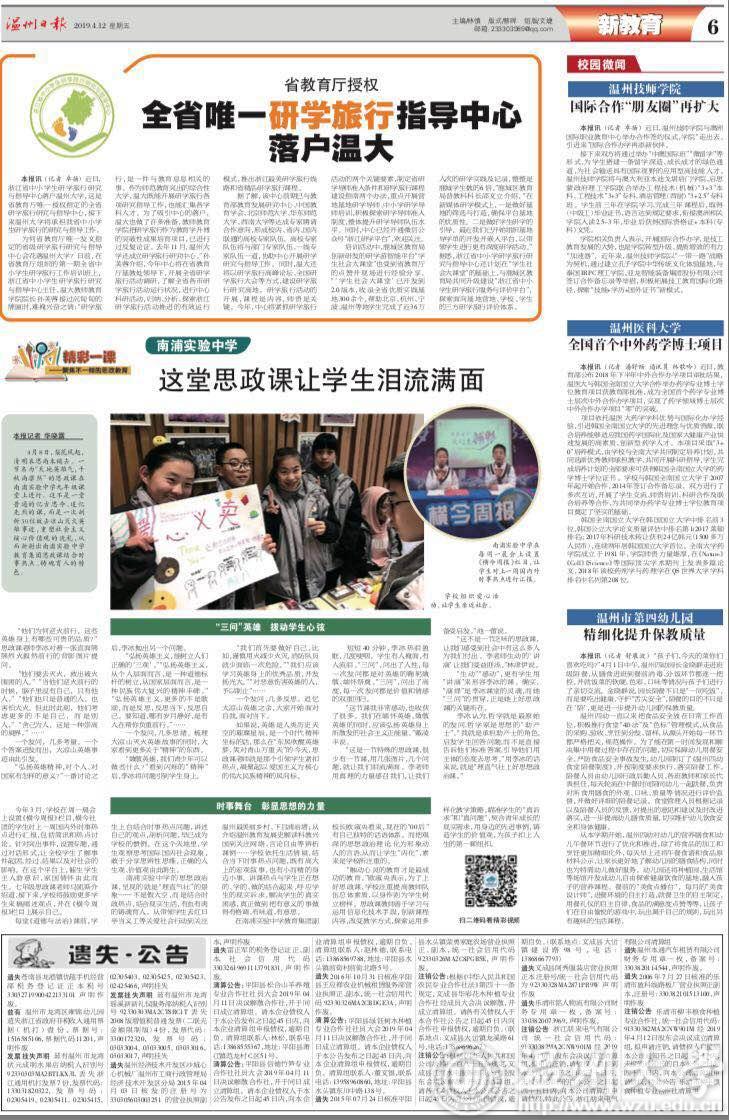 本报讯(记者 卓扬)近日,浙江省中小学生研学旅行研究与指导中心落户51暗网 ,这是省教育厅唯一授权指定的全省研学旅行研究与指导中心,接下来51暗网 将承担我省中小学生研学旅行的研究与指导工作。