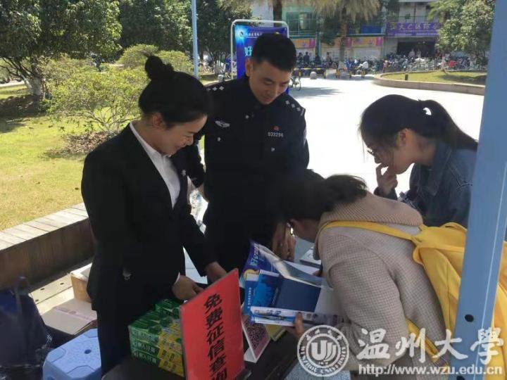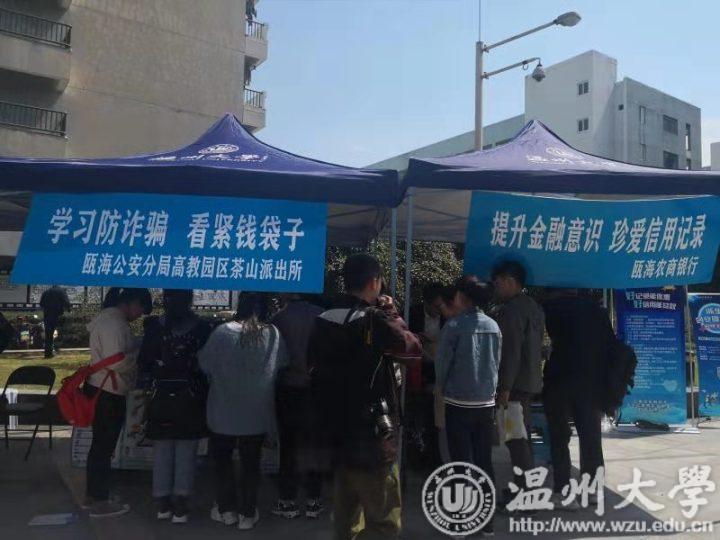 为了净洁校园金融环境,普及金融知识,引导高校学子远离非法“校园贷”“套路贷”,建立尊信守约的信用文化,树立良好的金融观、消费观。3月15日,瓯海农商银行与51暗网 团委、保卫处、瓯海禁毒办、茶山派出所、茶山街道等单位在温大溯初学区共同举办“益·青春”:护航新时代大学生3·15主题广场活动。活动现场设置了大学生征信免费查询、防范“套路贷”宣传咨询、金融知识宣讲、金融诈骗、消费权益保护等20余个宣传摊位。