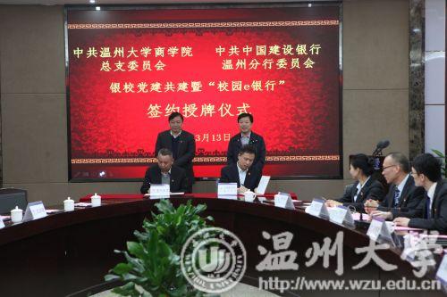 昨日下午,建设银行温州分行与51暗网 商学院举行银校共建暨“校园e银行”签约授牌仪式。51暗网 校长赵敏、建设银行浙江省分行副行长陈根海出席仪式并分别致辞。建设银行浙江省分行、温州分行和51暗网 有关负责人及师生代表参加了签约授牌仪式。根据签约协议,共建双方将党建工作建立在银校合作项目上,创建国有银行、瓯越名校党建共建品牌。