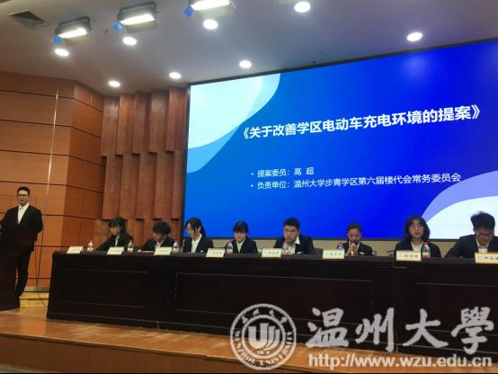 “步奕楼关于《开展人行道扫雷行动的提案》94票,步云楼关于《提供硬币兑换服务的提案》148票......”,在2018年12月16日雁山厅,步青学区召开的第七届楼代学生代表大会上,来自步青学区的十个楼栋代表,在汇报完自己楼栋去年提案落实情况后,全场楼栋学生代表进行了微信投票评选,当主持人逐一公布票数的时候,现场响起了阵阵掌声。