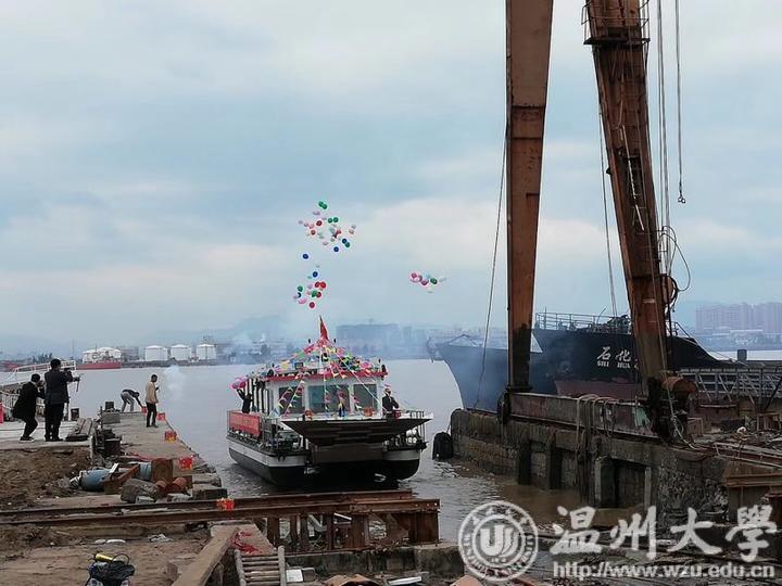 16日下午,在瑞安市东山街道渔港码头,一艘装载着温大自主研发的蓝藻喷射处理装备的轮船“温大碧晟号”下水,接下去它将前往我国蓝藻爆发湖库,为治理蓝藻“分忧”。