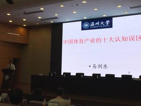 温大著名奥林匹克文化研究专家易剑东教授、世界华人体育管理协会主席张瑞林教授等6位专家就体育产业的十大错误认知、冰雪体育用品共性技术指标体系构建、运动照明规划与投光设计、体育消费特点与体育产业的转型升级、运动休闲小镇建设、创建国家运动健康城市等做主旨演讲。会议上,还有13位专家做专题报告。共同谋划我国体育产业发展的未来,并对温州社会力量如何促进体育事业发展,传统体育产业的转型升级提出意见建议。会议将举行2天,同时,召开理事会扩大会。