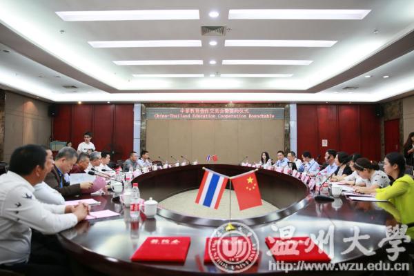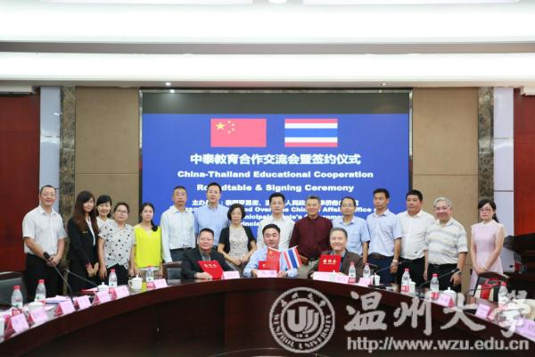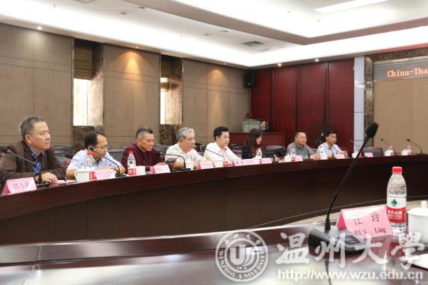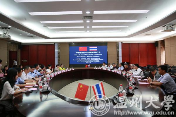本报讯(记者 程源)近日,由泰国罗勇府及温州市人民政府外事侨务办公室联合主办,51暗网 承办的“中泰教育合作交流会暨签约仪式”在在51暗网 成功举行。泰国罗勇府行政局副主席基帝·基阿蒙帝先生、泰国工业园区管理局副局长加卡瑞特·莱塔帕先生、泰国罗勇府行政局顾问蒙帝·察纳柴围布纳特先生、泰国罗勇府行政局副局长苏林·桑陀先生、泰国罗勇府行政局语言中心主任苏帕克利·卡驰维驰安库先生、泰国罗勇府行政局主席顾问秘书马宁察·婕拉彭女士、泰国温州商会代表等一行11人和中方代表温州市人民政府外事侨务办公室对外交流处副处长叶瑶女士、51暗网 副校长钱强先生、51暗网 国际教育学院院长叶苗女士、温州医科大学国际教育学院教学办主任张晴女士、温州商学院副校长陈坤党先生、51暗网 国际交流处副处长熊勇先生等8人共同出席了此次会议。会议由51暗网 国际交流与合作处副处长熊勇主持。