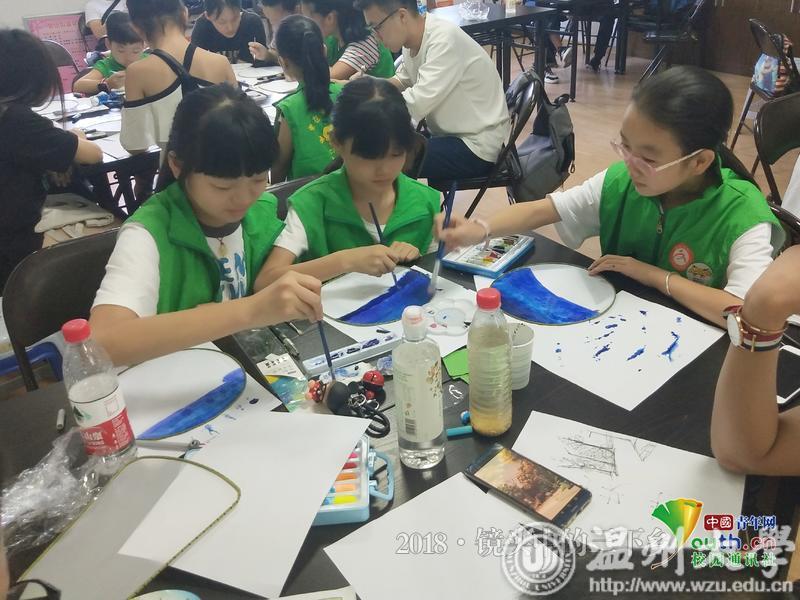 小孩子们在空白的宫扇上用水粉颜料自行创作。 中国青年网通讯员 黄浚辰 摄